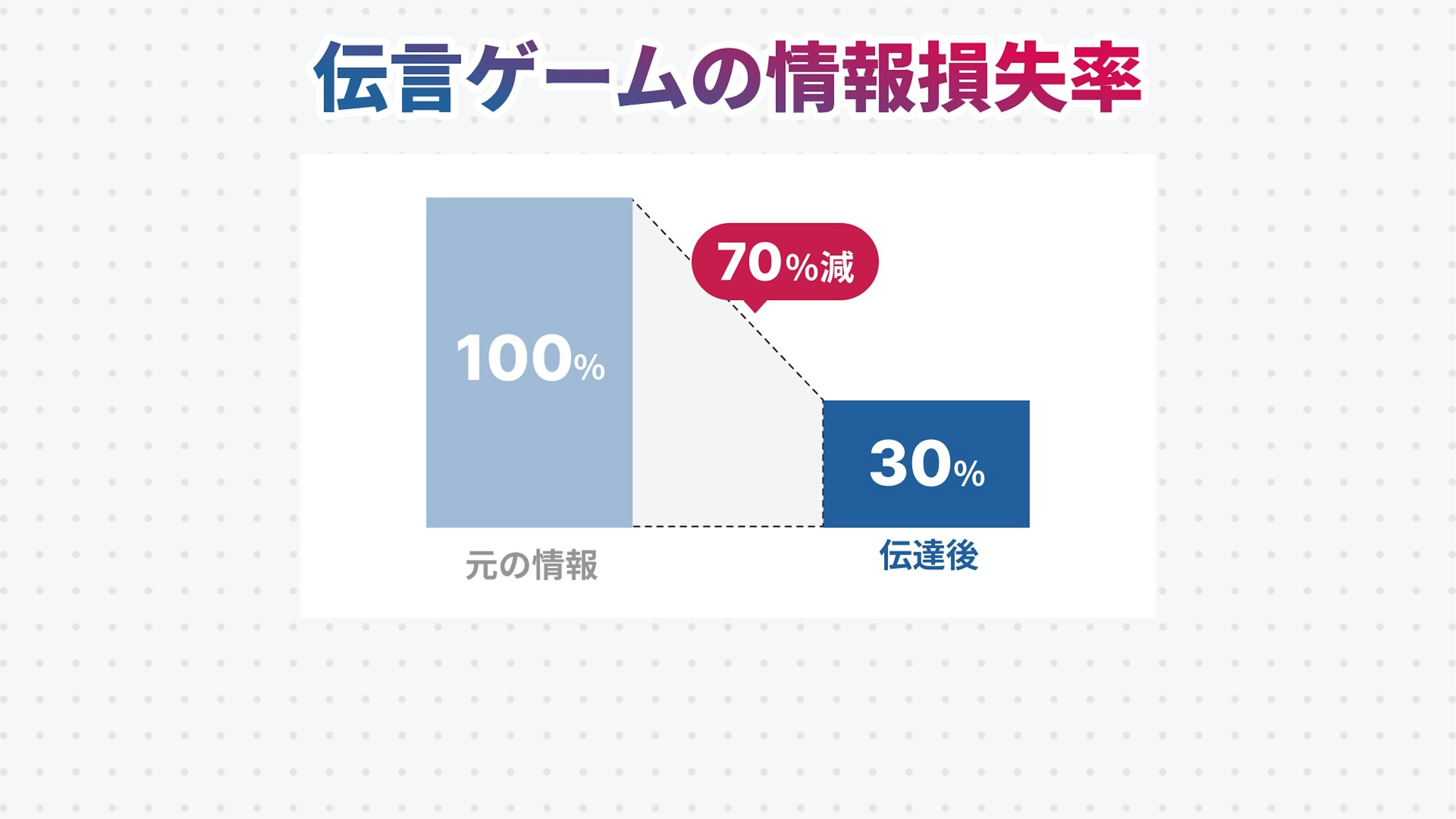 わずか5〜6回の伝言を経ただけで、細かい情報の約70%が失われてしまったのです。