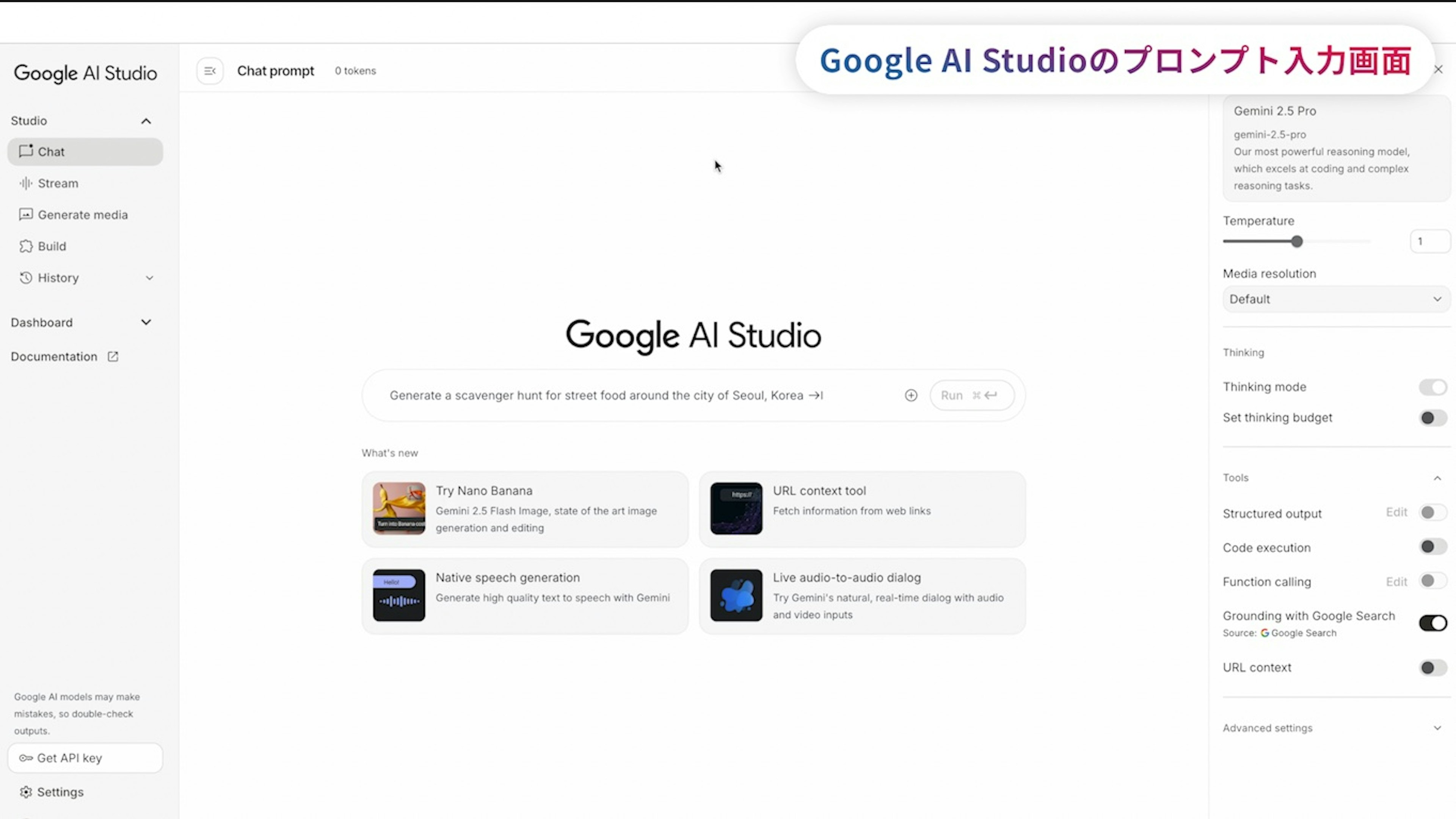 Google AI Studioとは、Googleが提供する高性能な生成AIプラットフォームで、なんと無料で使えます。