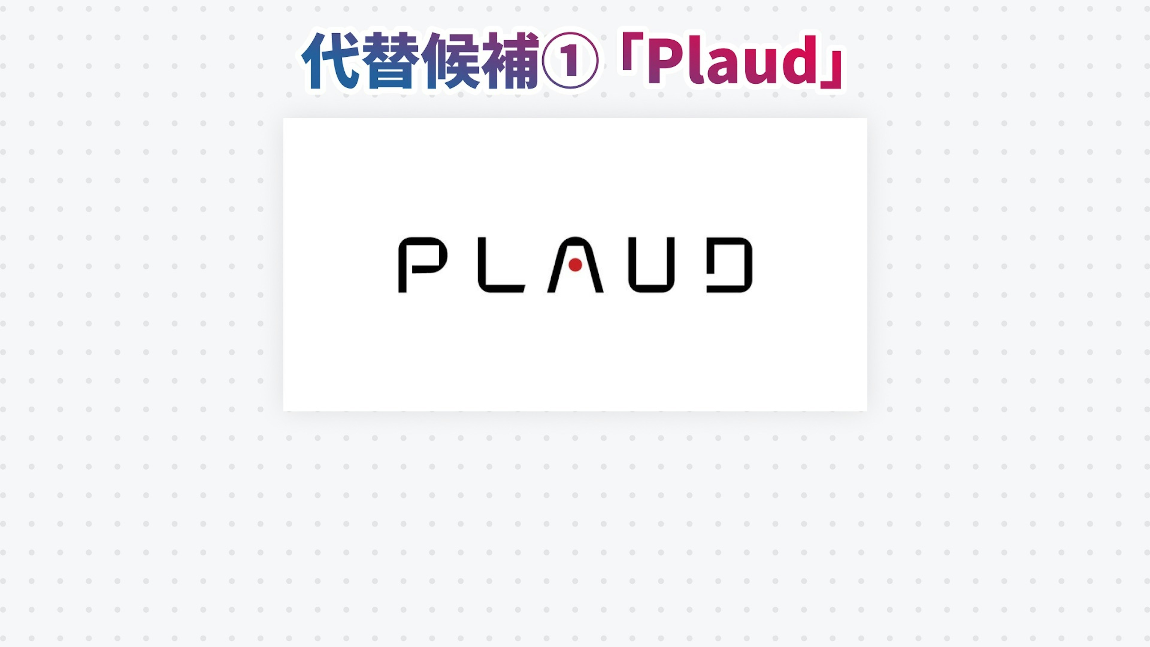 その場合は、代替候補となるツールを検討する価値があります。例えば、PLAUDというサービス。