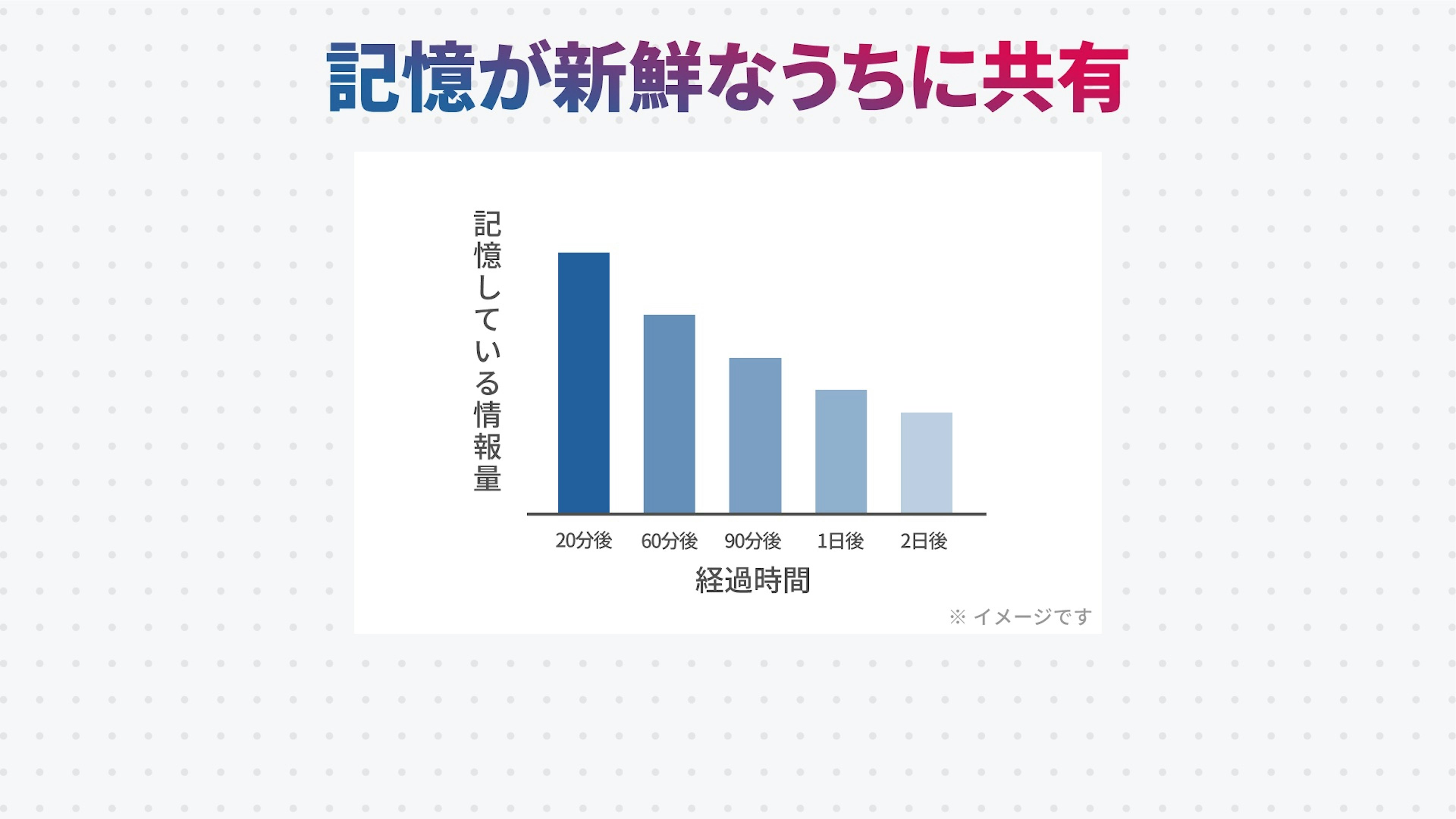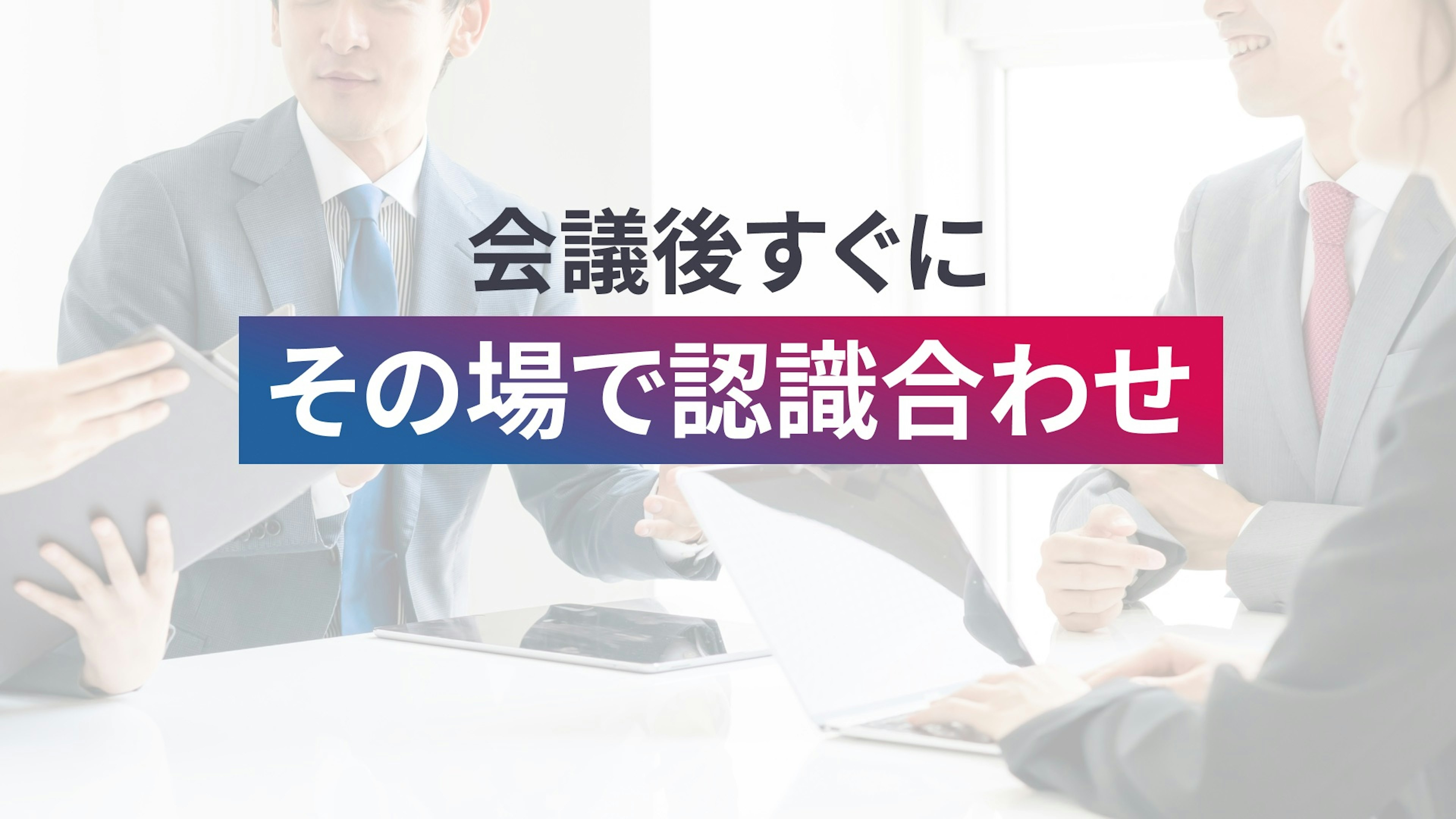 会議直後なら、全員が話したことを覚えているので、認識のズレはすぐに修正できます。