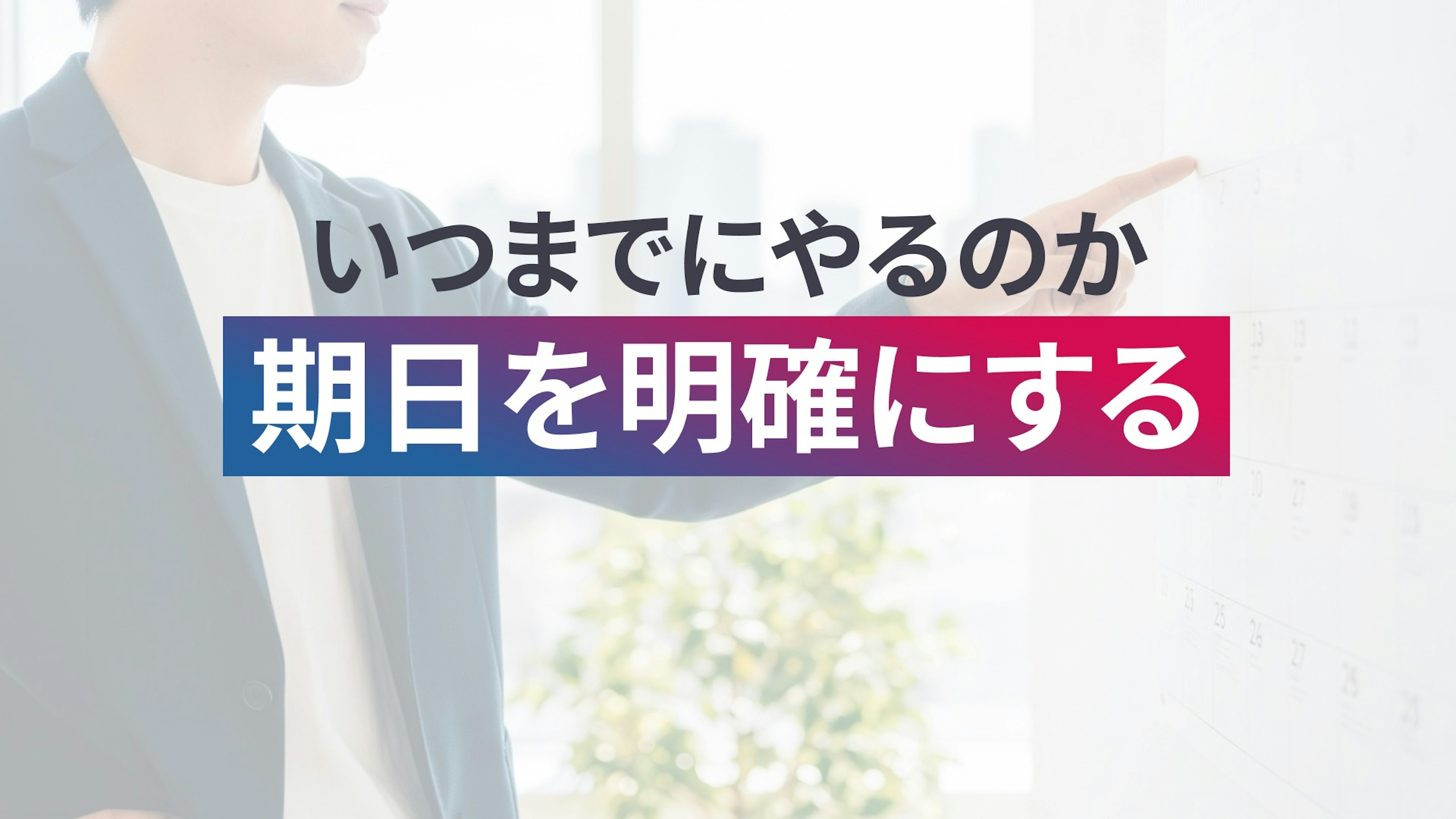 あとは、『いつまでにやるのか』期日を明確にすることも重要です。期日が曖昧な仕事も認識のズレにつながりますから。