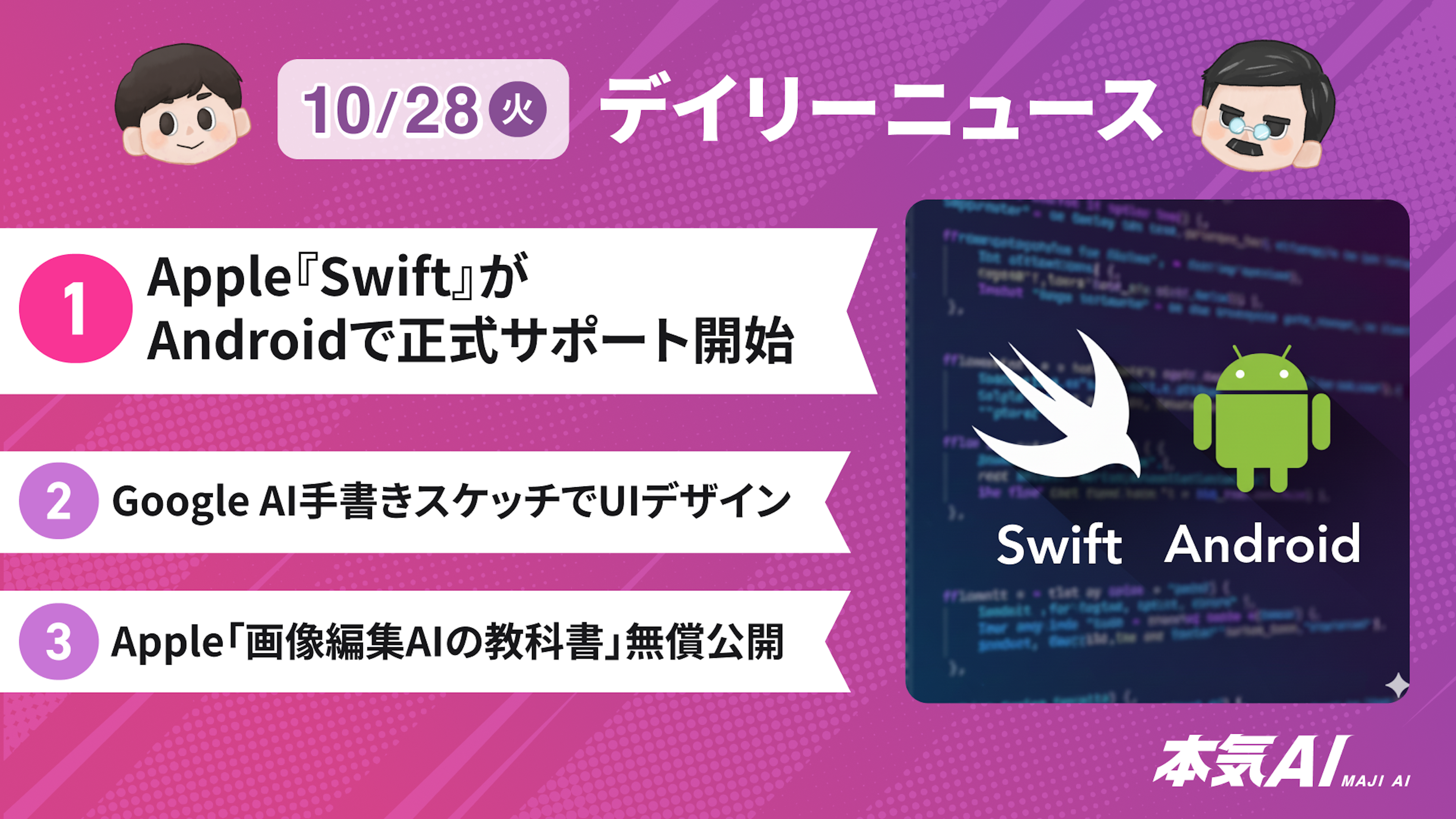 本日のデイリーニュース第1位は、Appleが『Swift』という自社の開発言語を、ライバルであるAndroidで正式にサポート開始、というニュースです