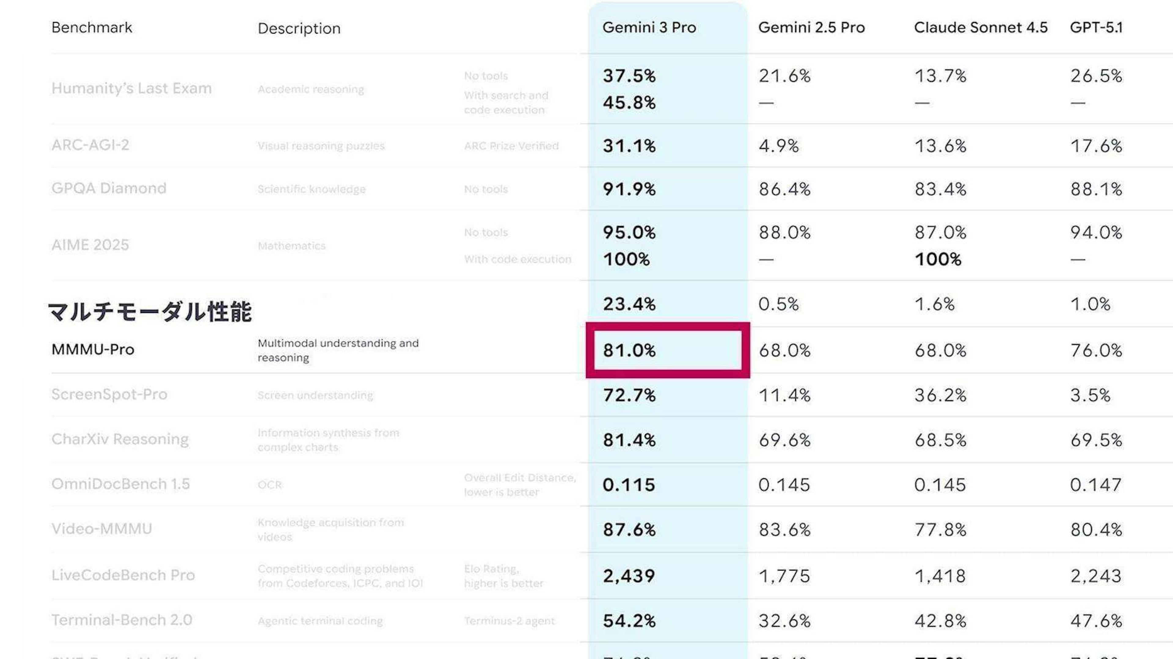 課金することで、最強のAIモデル「Gemini 3 Pro」がほぼ制限されずに使えるだけでなく、他のGoogleのAIサービスの性能も魅力です。