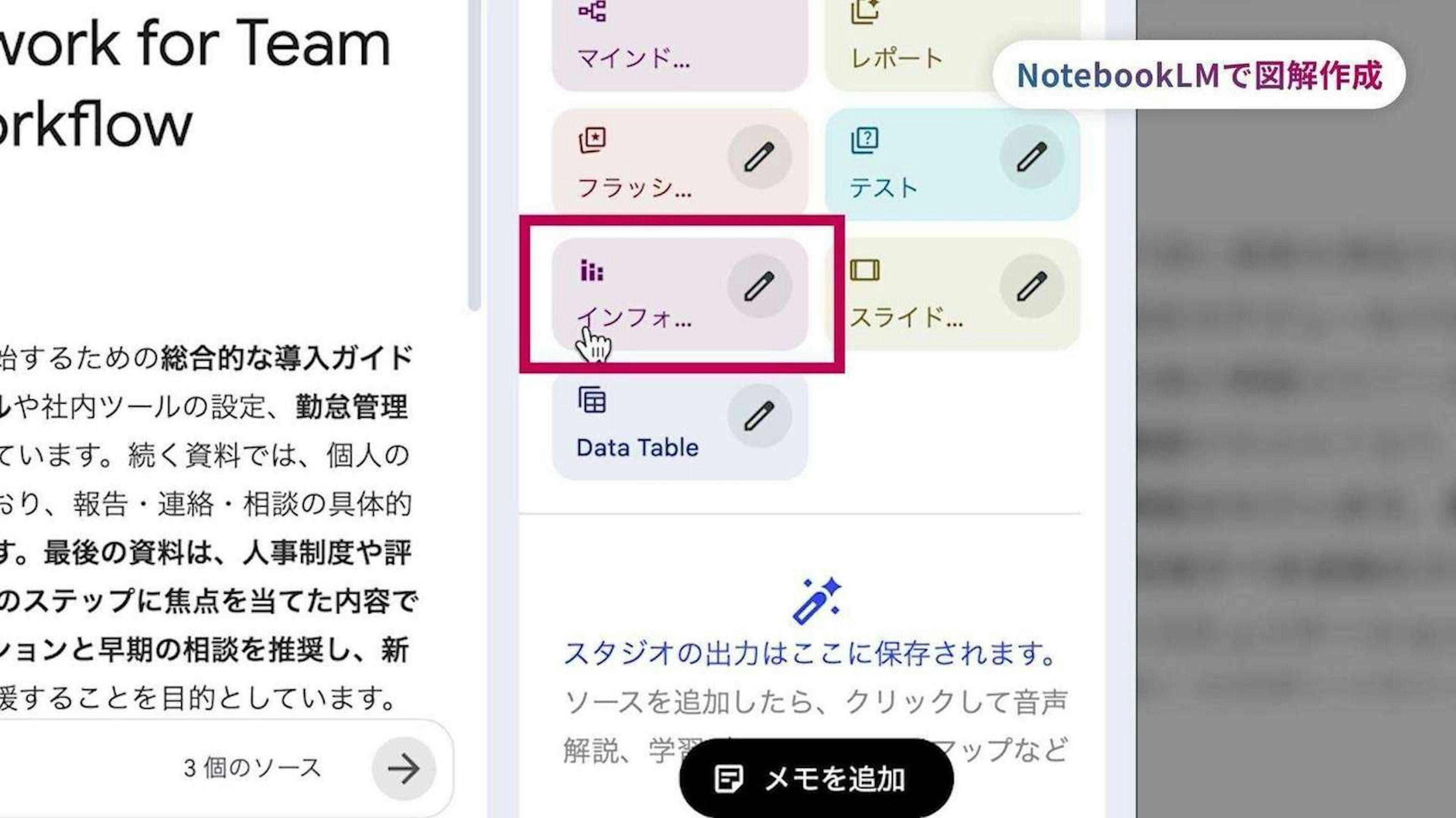 Webサイトのように見れる図解ならGemini、1枚の画像にまとめた図解ならNotebookLM。