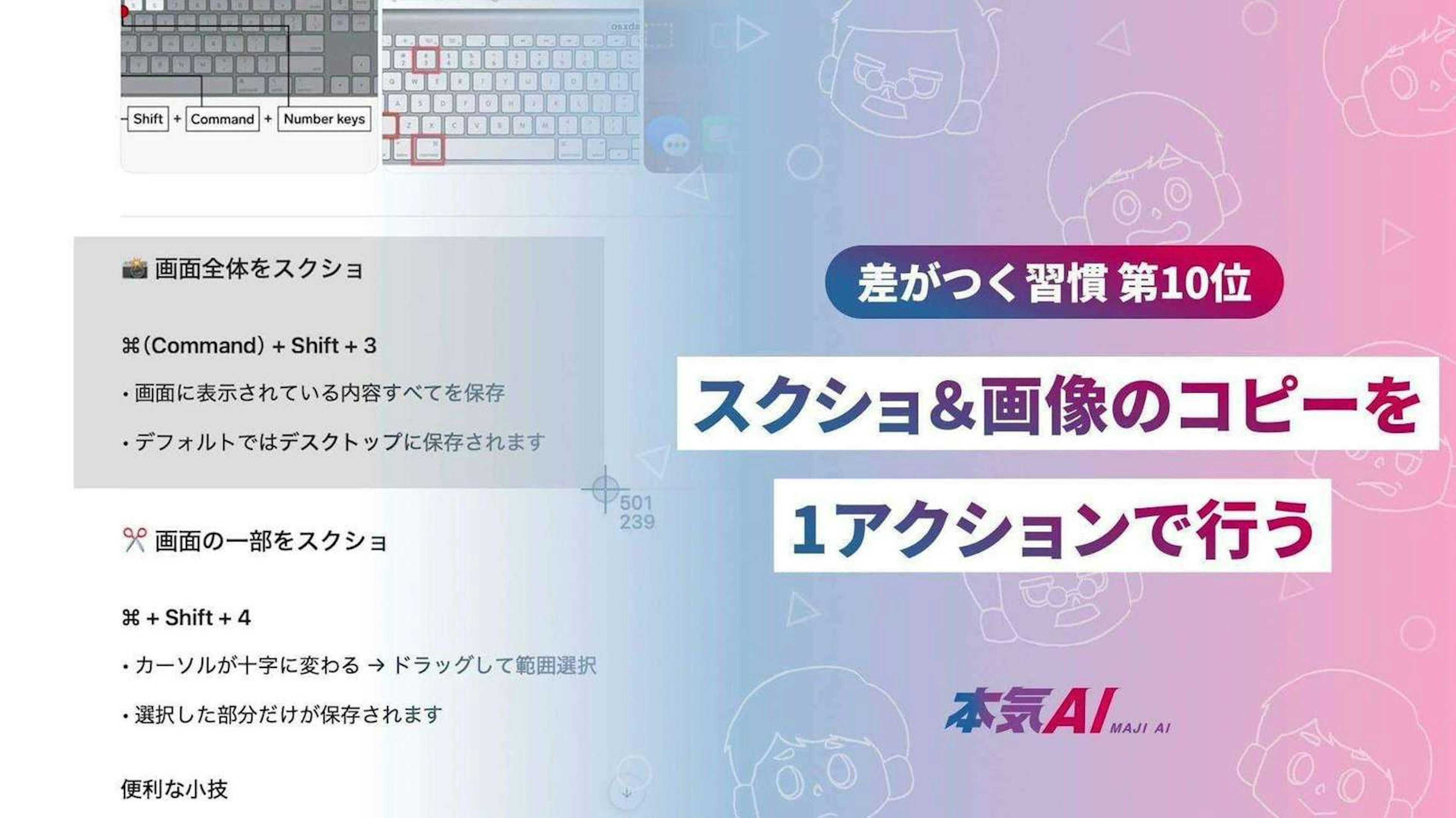 そこで「スクショを撮る=コピー完了」という状態にしておけば、AIを使う機会を自然に増やせます。