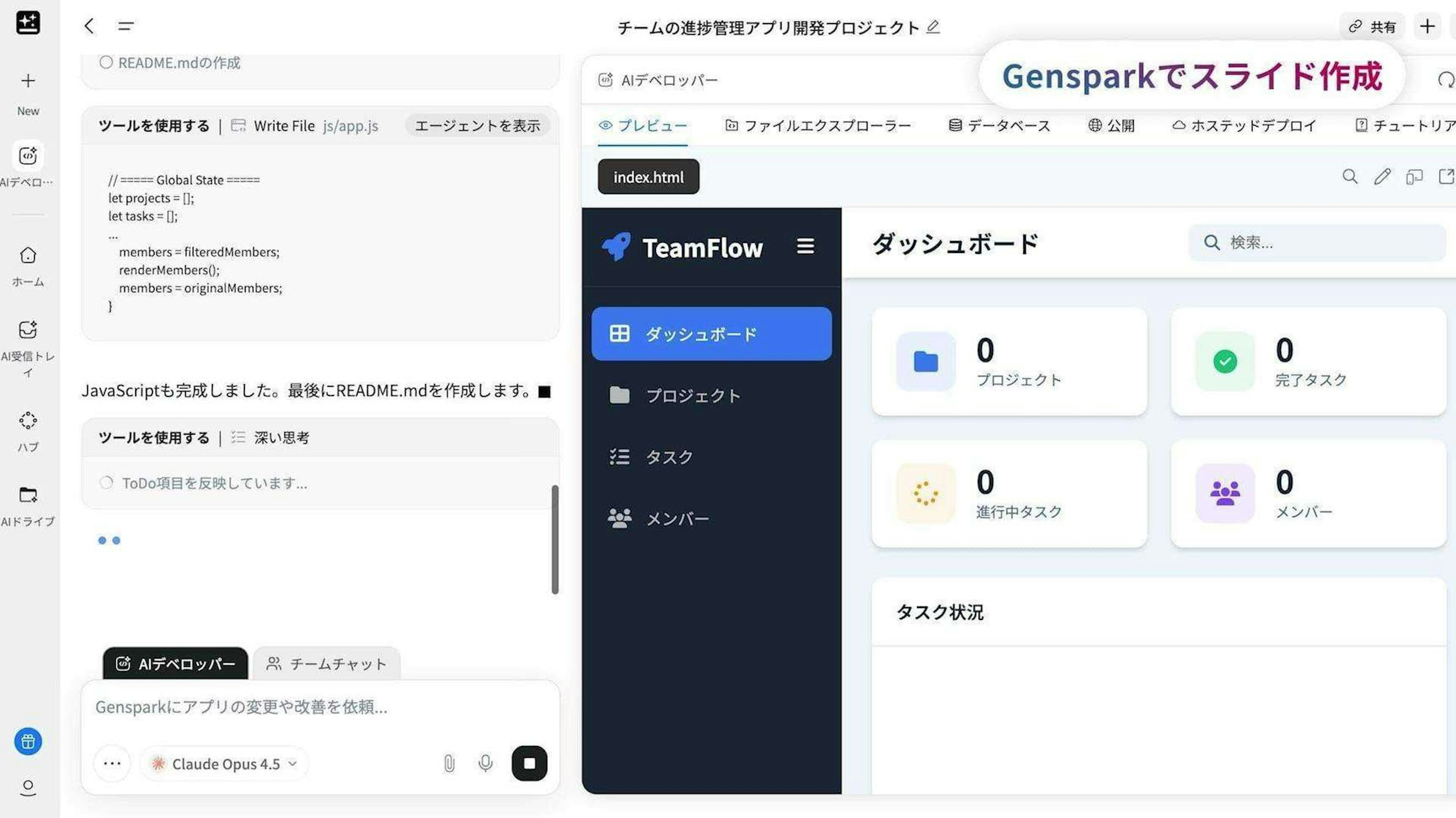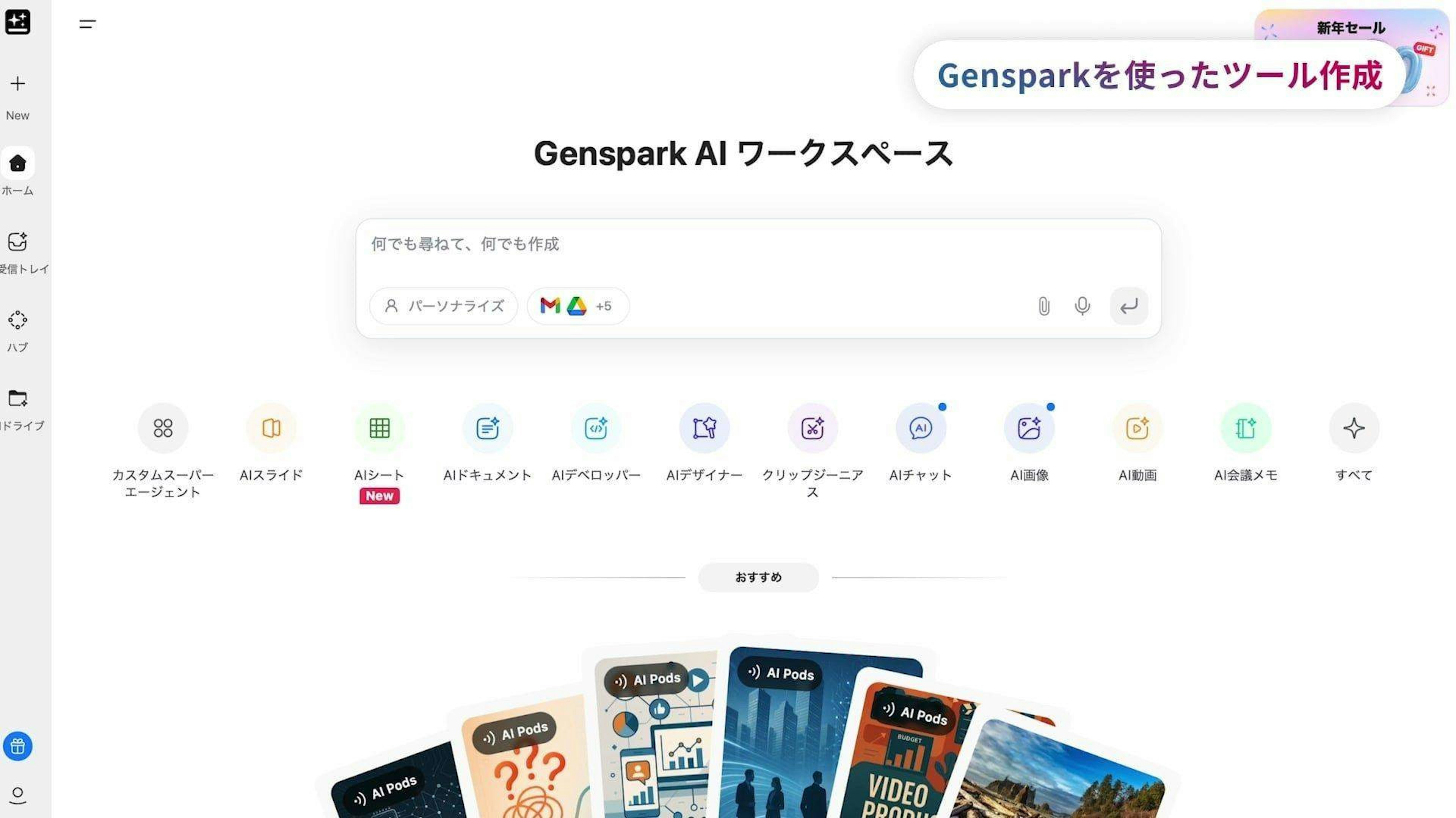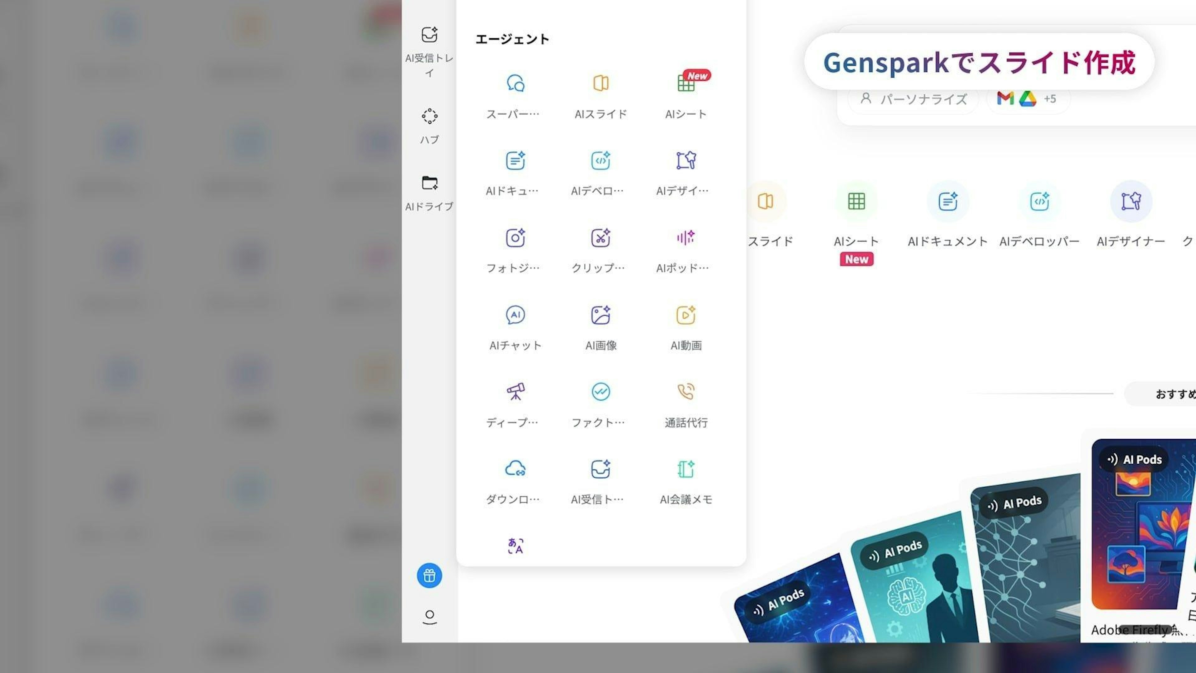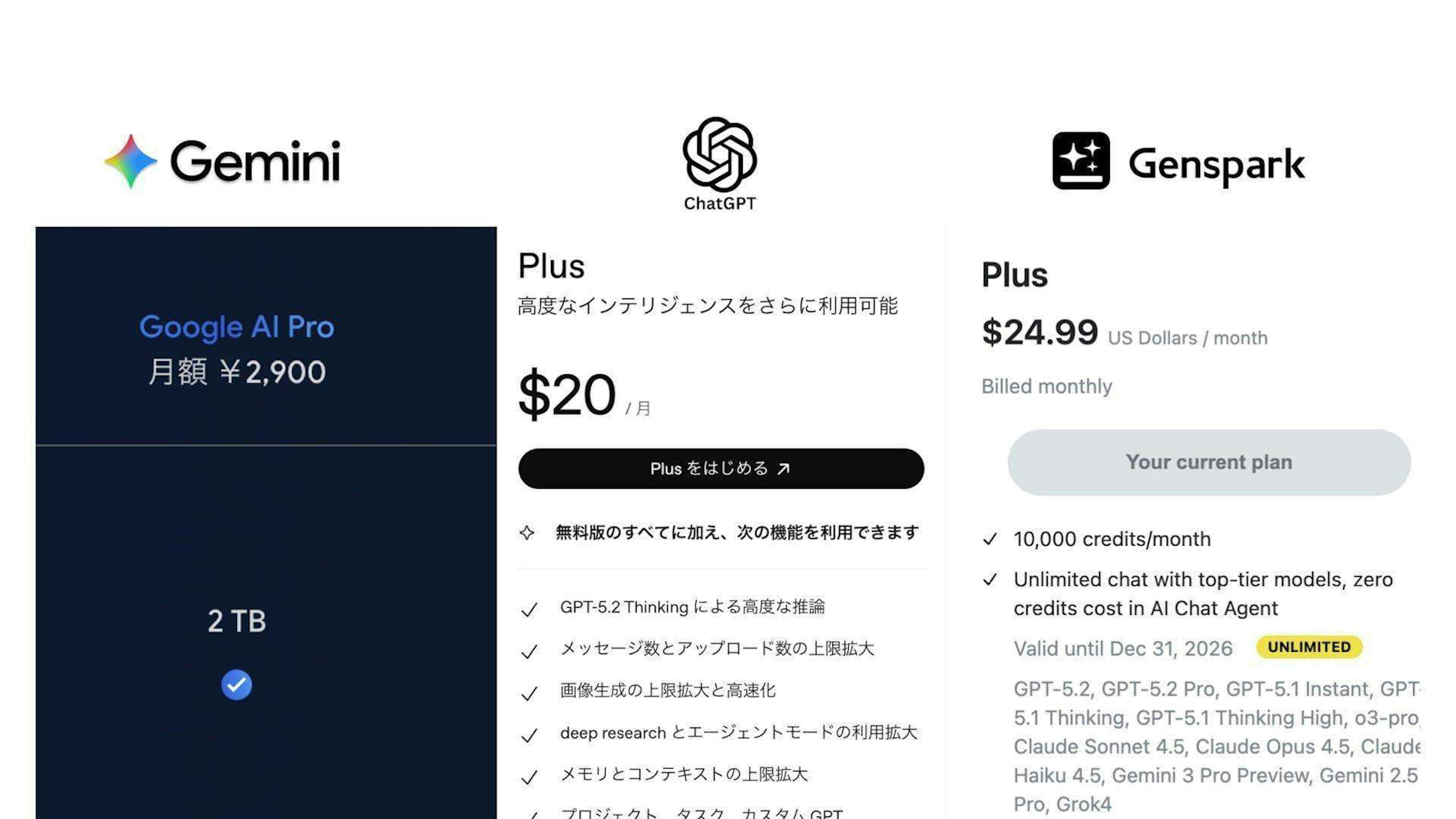 具体的には、「Gemini」「ChatGPT」「Genspark」の3つですね。