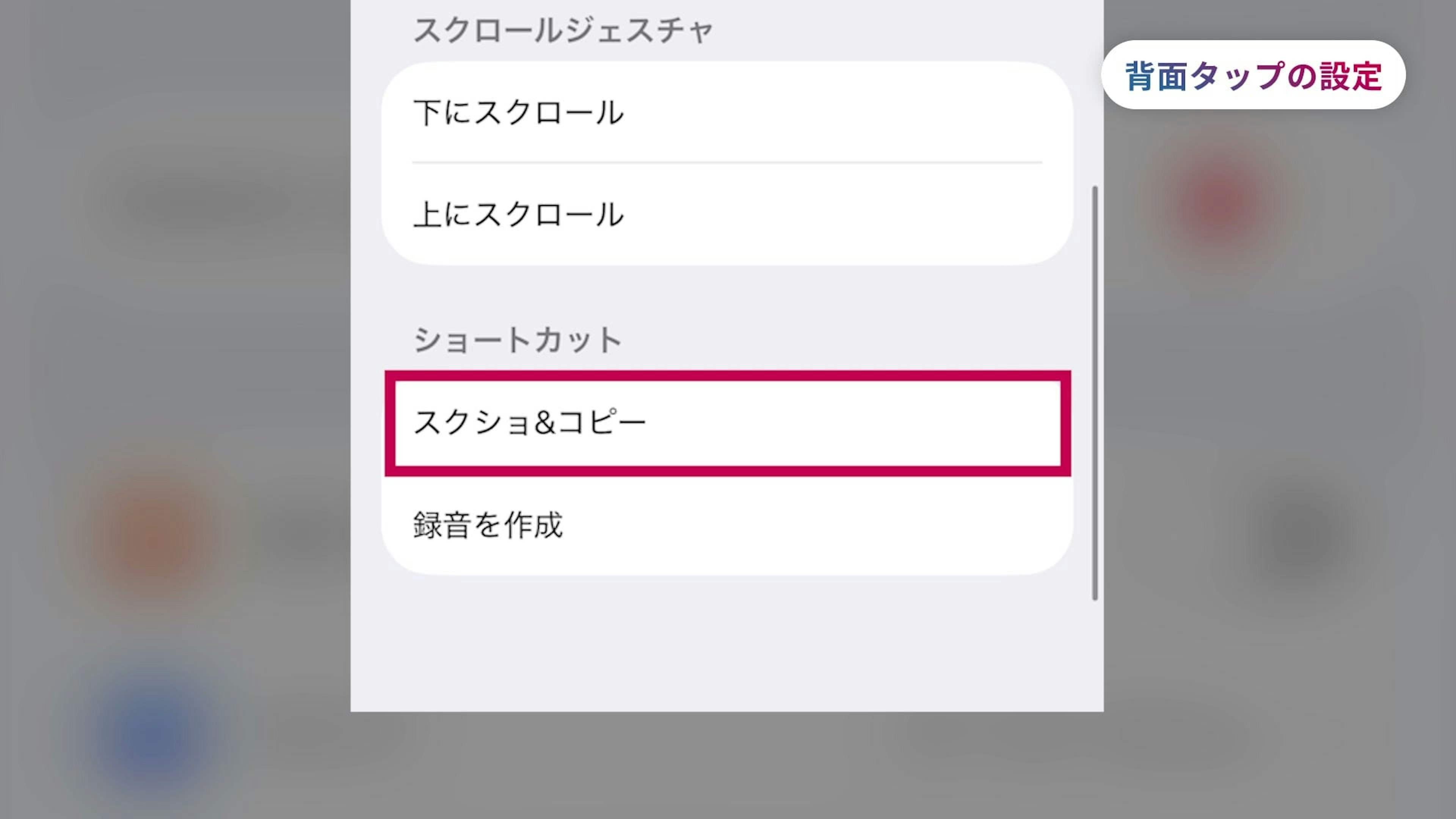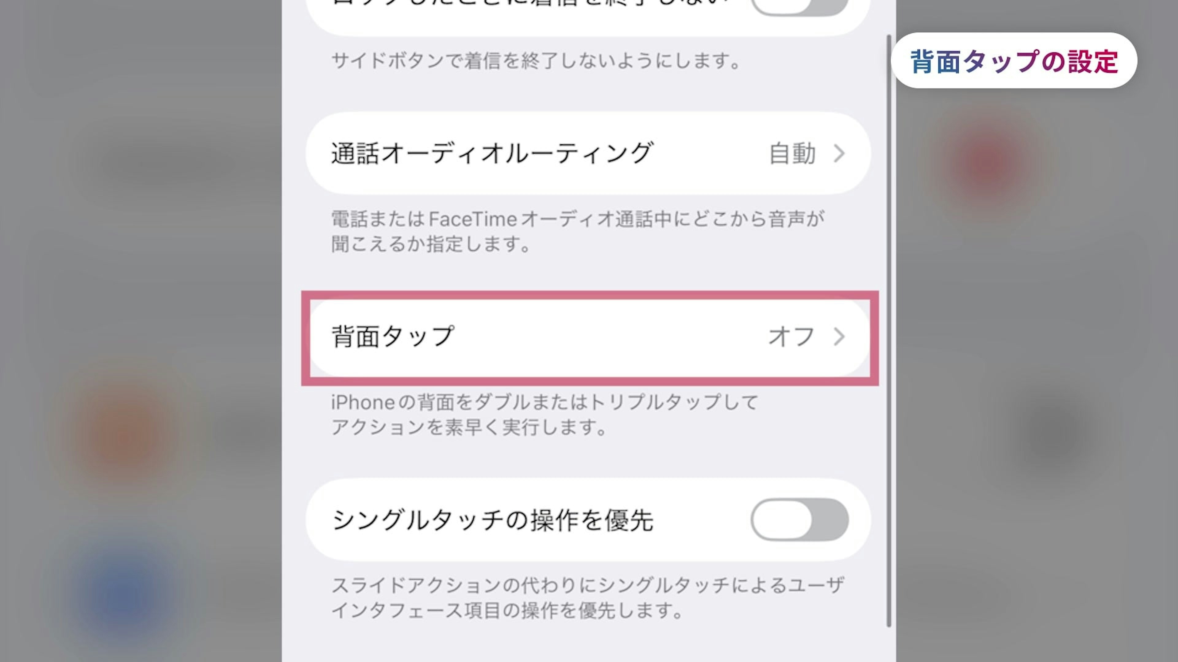 アクションボタンがない機種の場合は、「背面タップ」を設定しましょう。