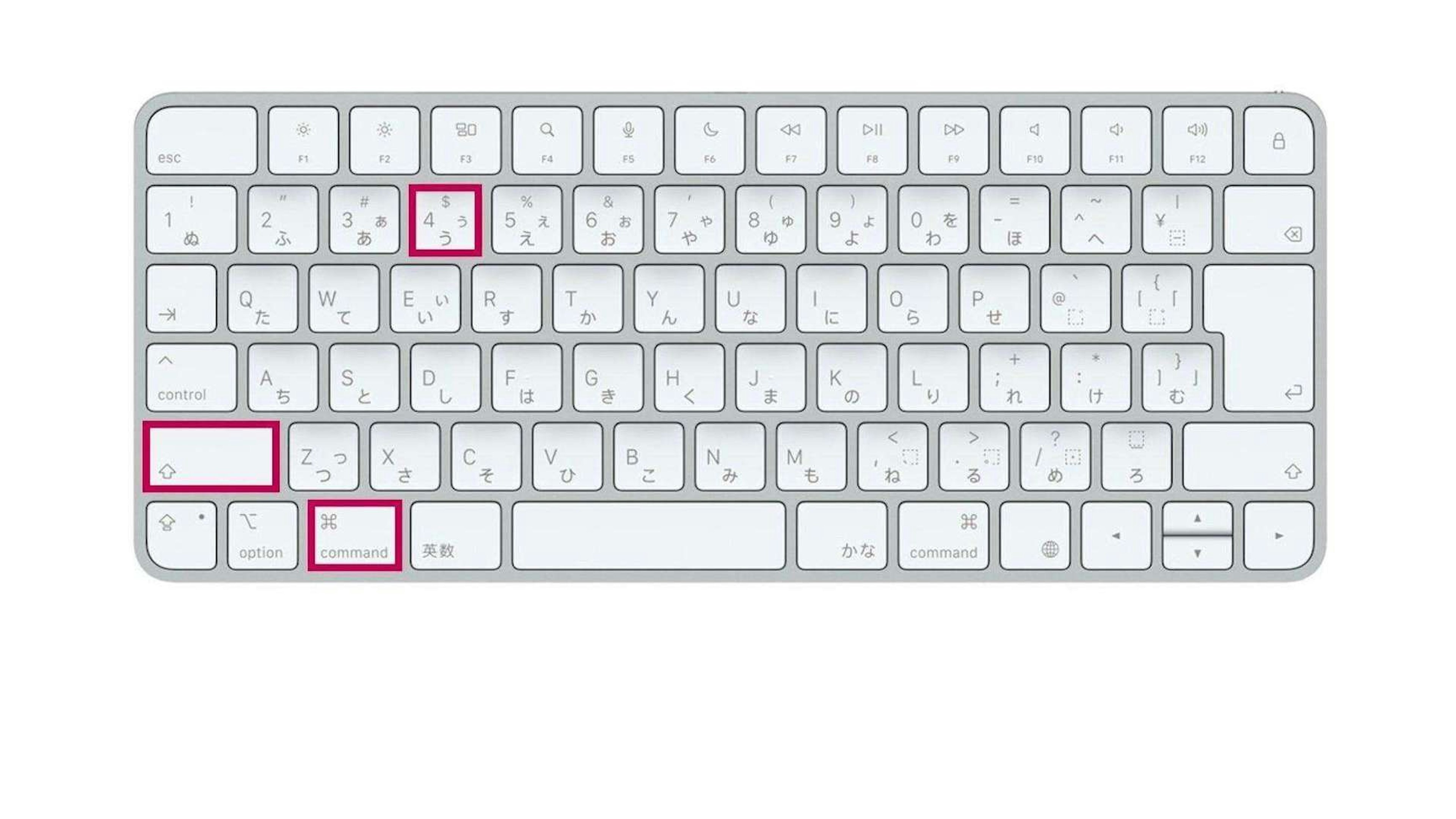 Macを使っている方は、通常「Control + Shift + Command + 4」と、4つのキーを押す必要があります。