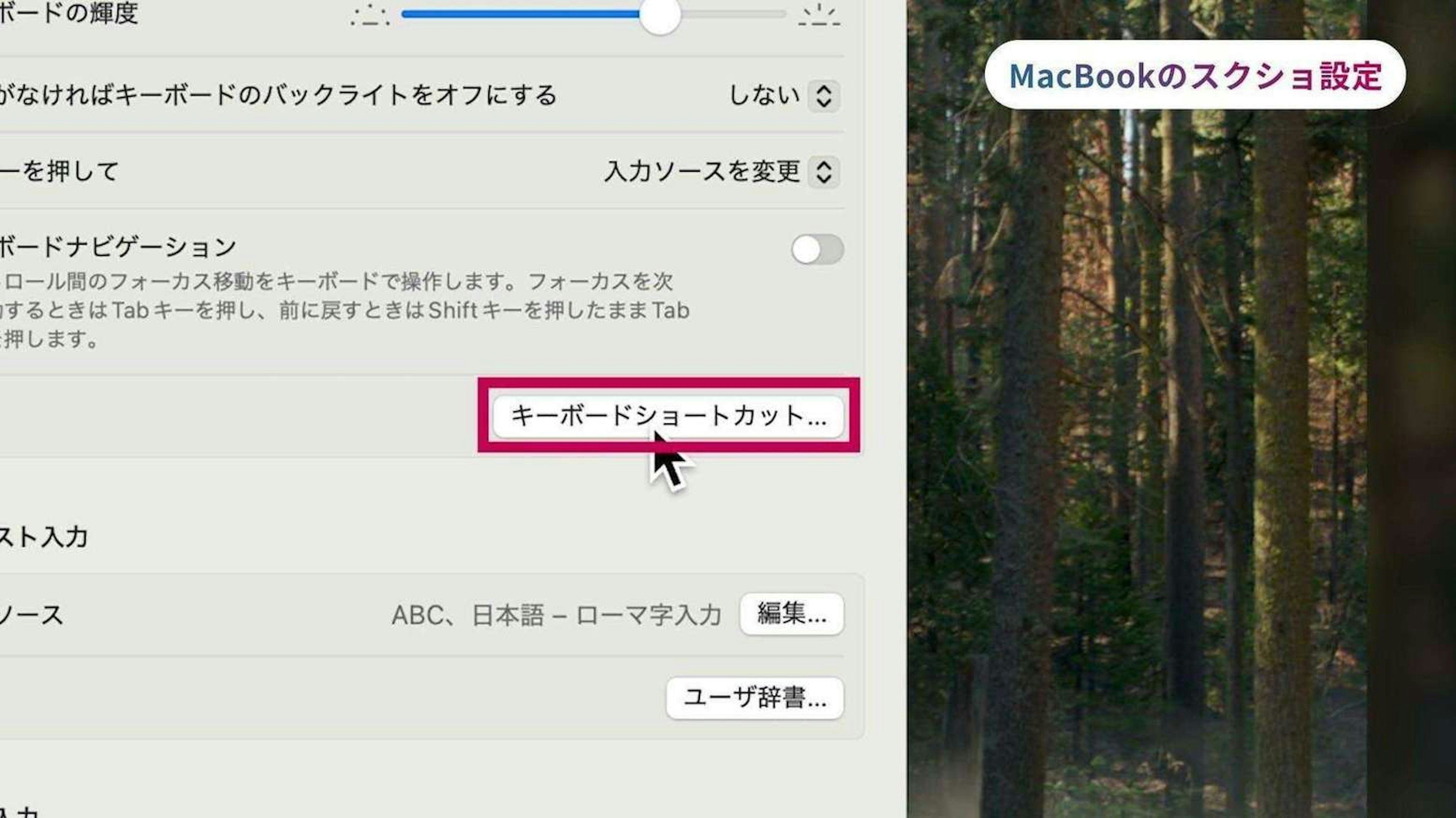 設定画面の「キーボード」という項目から、「キーボードショートカット」を選択し、