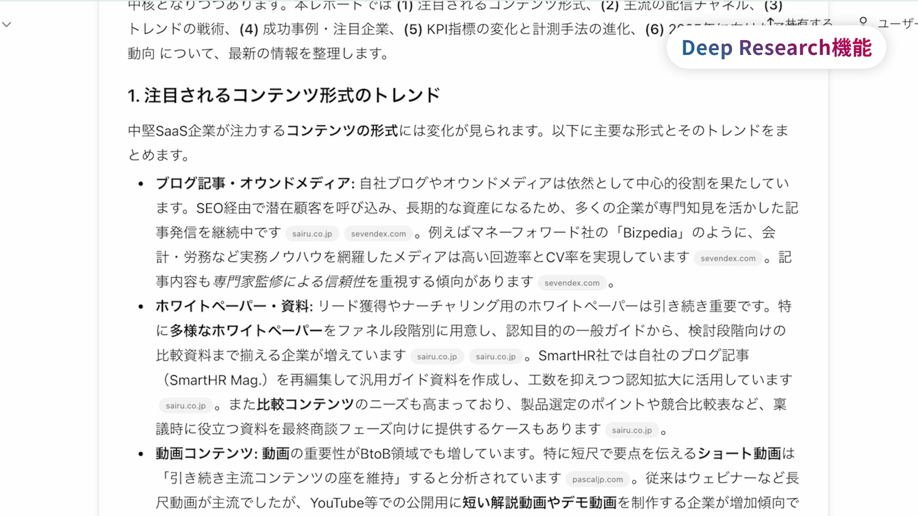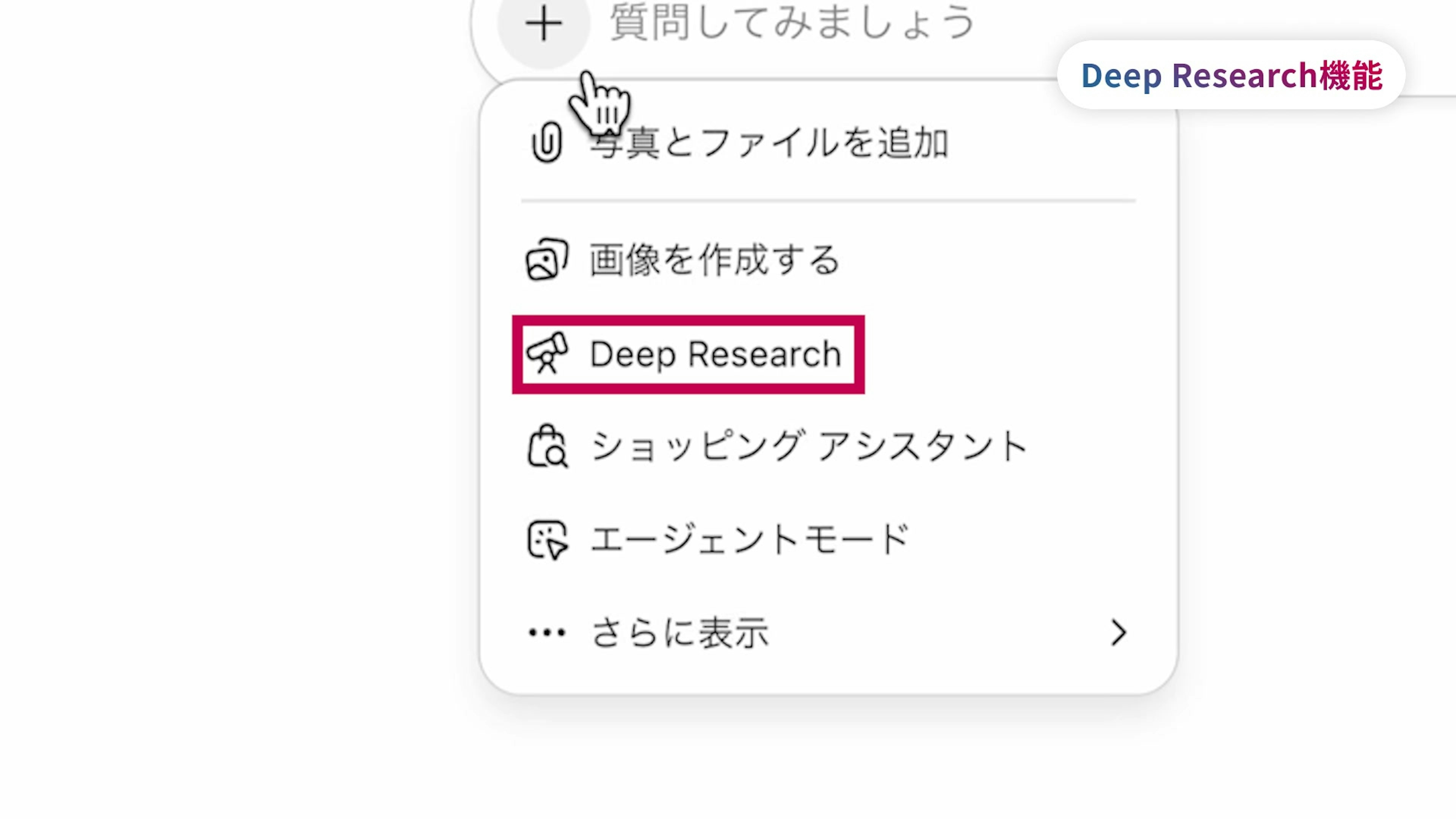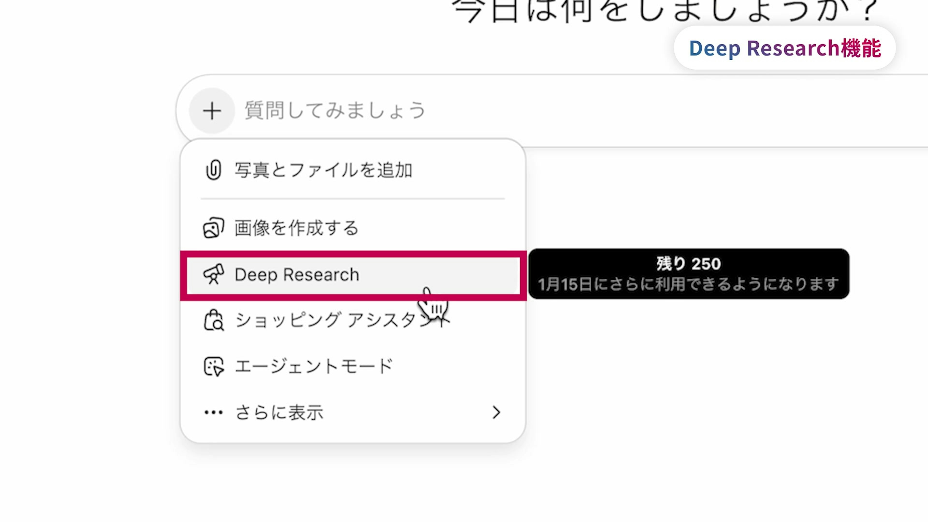 でもリサーチといえば、「Deep Research」機能?みたいなのなかったでしたっけ?