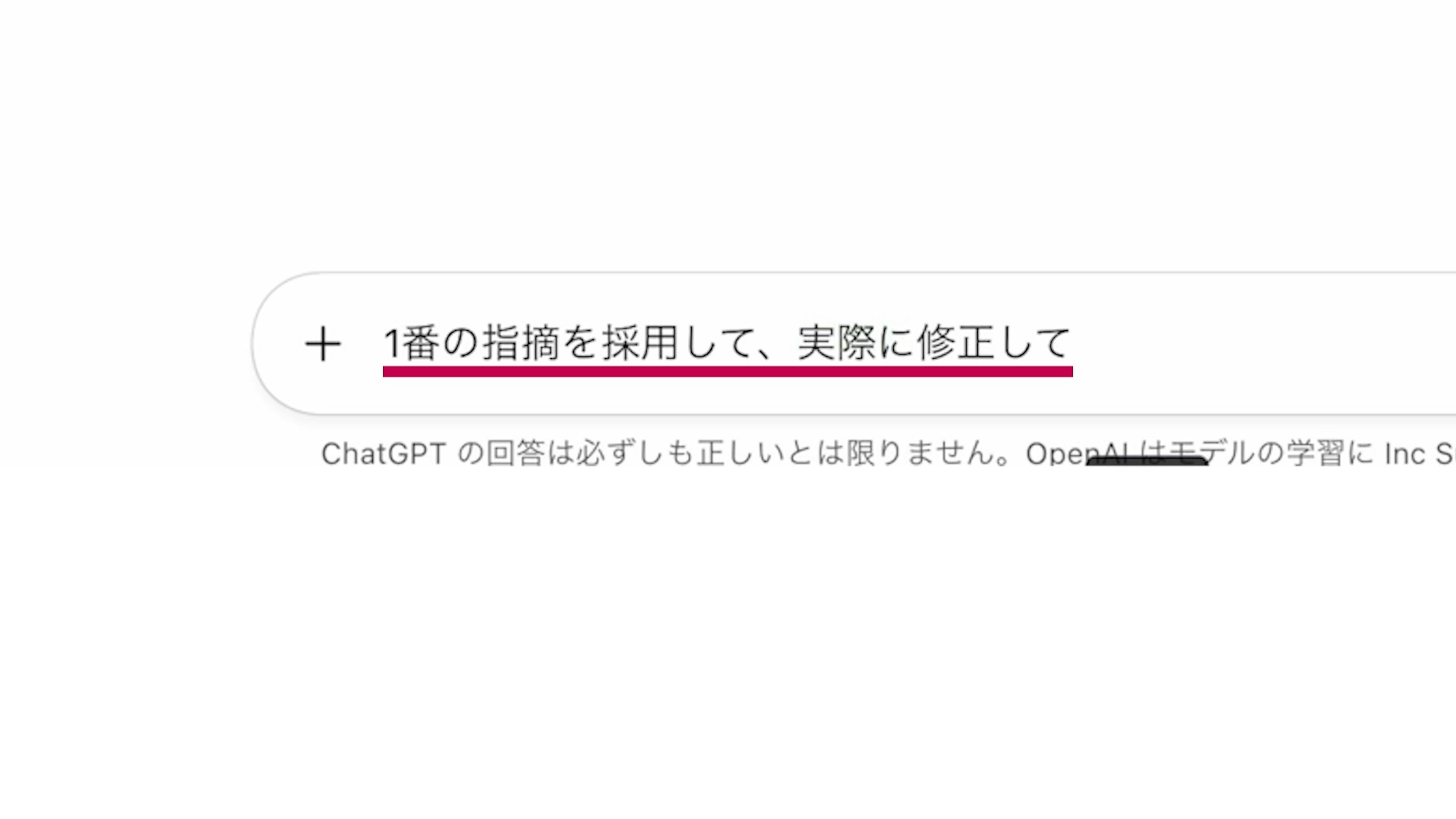 気に入った改善案があれば、「1番の指摘を採用して実際に修正して」と頼めば、AIがその場で修正案を書いてくれます。