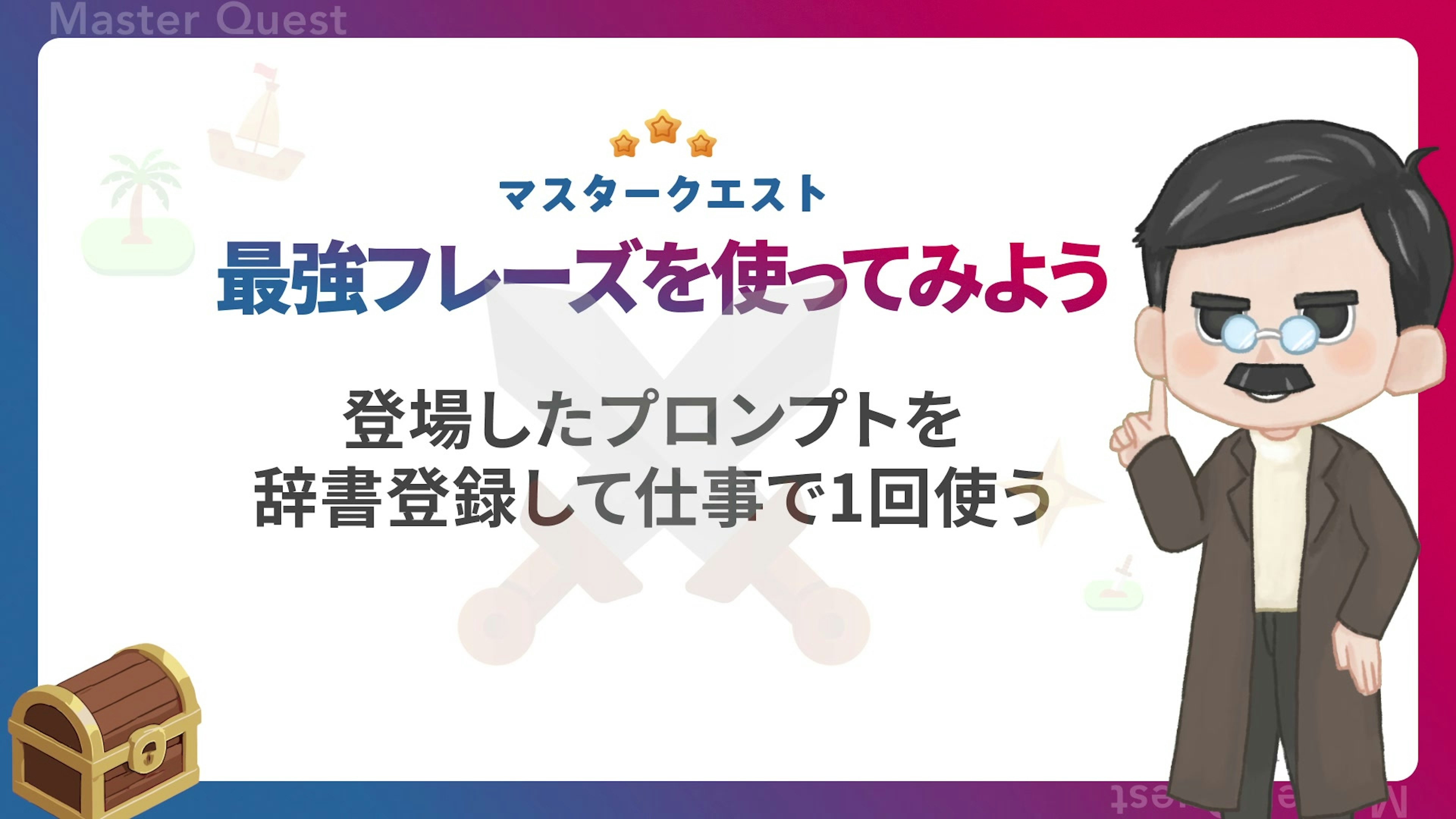 「5つの最強プロンプト」をすべて辞書登録して、次に仕事をするときに、最低1回は使ってみてください。
