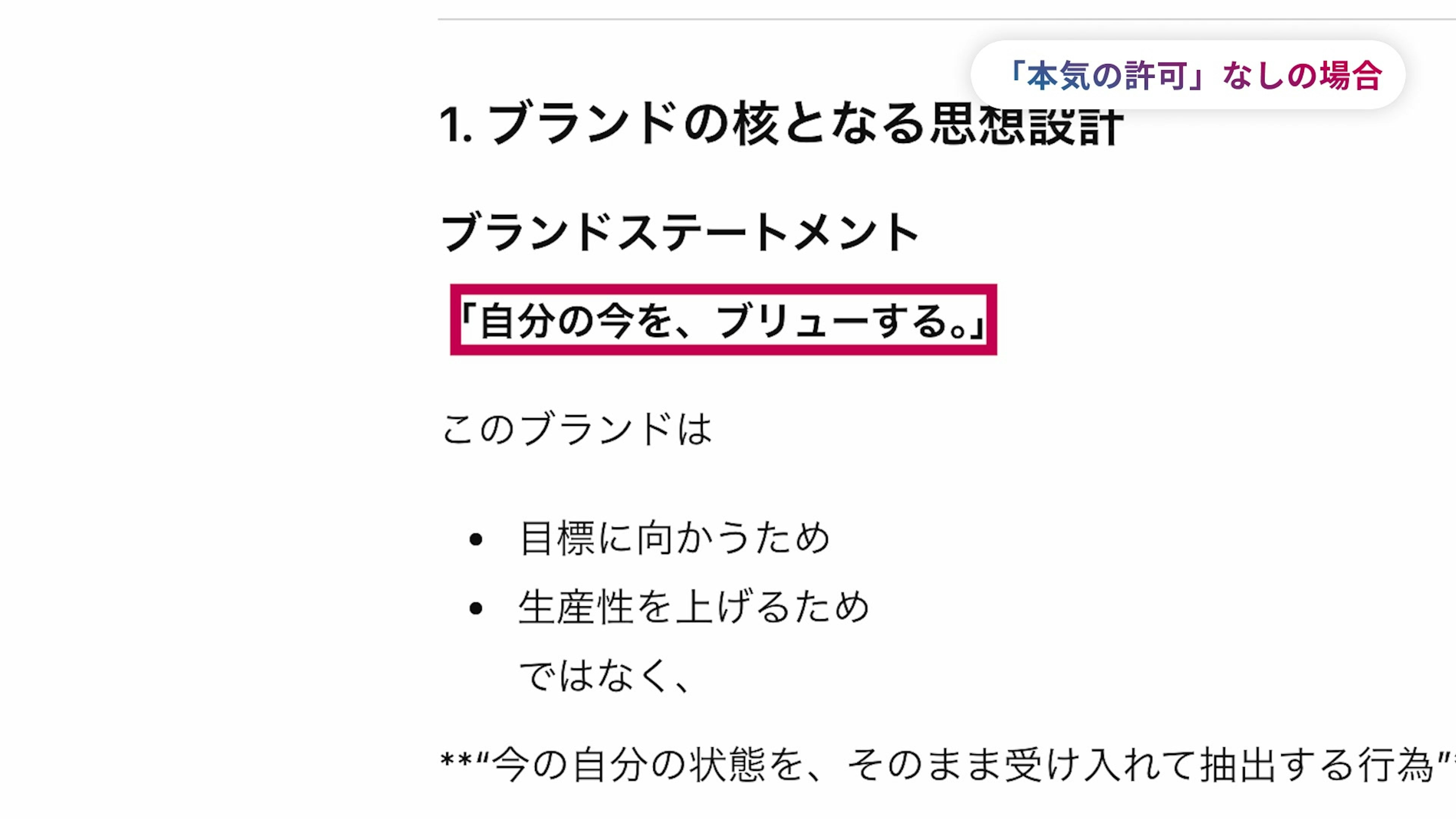 ですから、日常業務で品質を上げたいレベルであれば、このプロンプトで「本気の許可」を与えるくらいがベストでしょう。