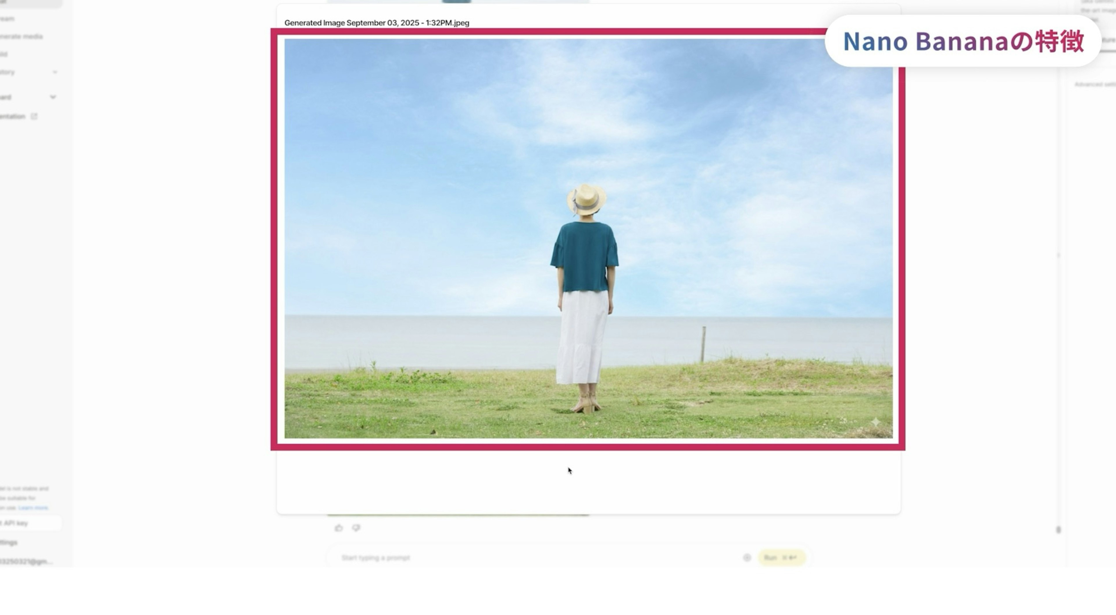 では、早速Nano Bananaを使って先ほどの画像を修正してみましょう。