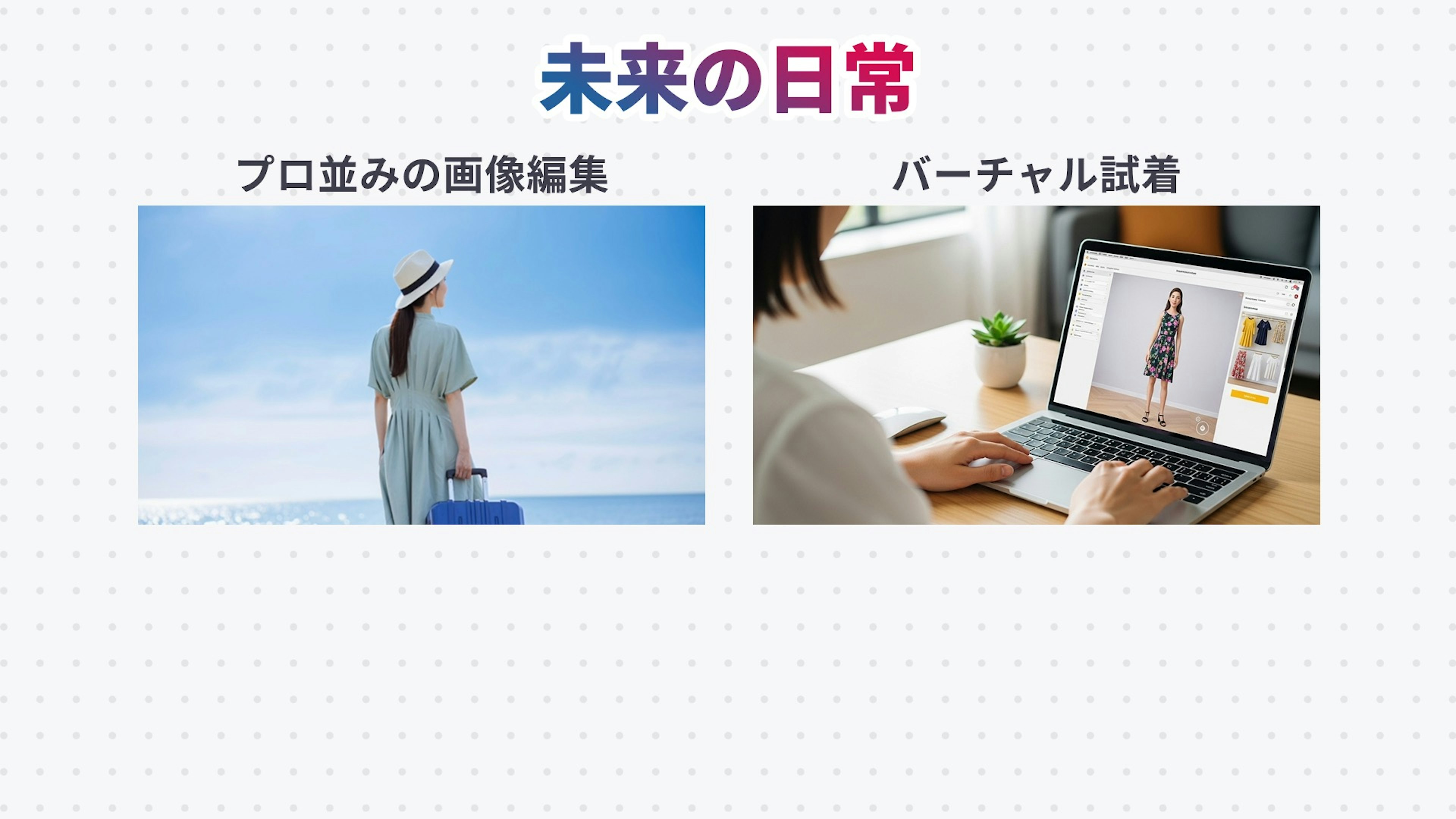 ええ。例えば、SNSに投稿する写真をプロ並みに編集できたり、ネットで服を買いたい人がいたら、自分の写真でバーチャル試着できるのが当たり前になったりするでしょう。