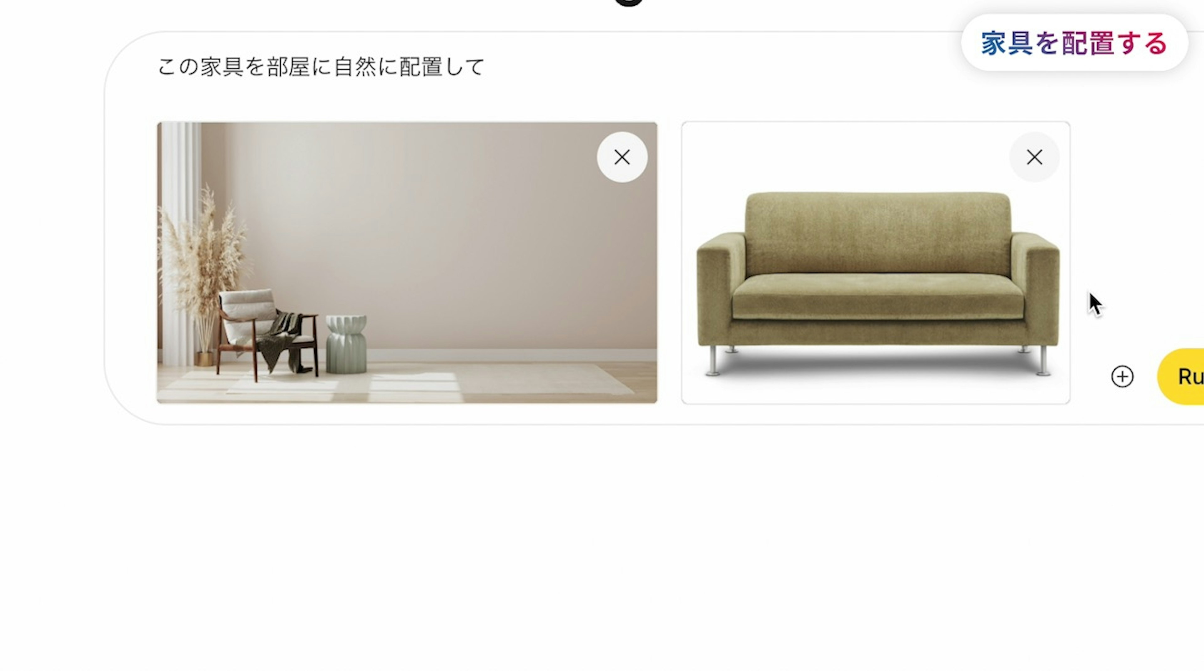 自分の部屋の写真と、購入したい家具の画像をNano Bananaに渡して、チャット欄に『この家具を部屋に自然に配置して』とお願いしてみます。