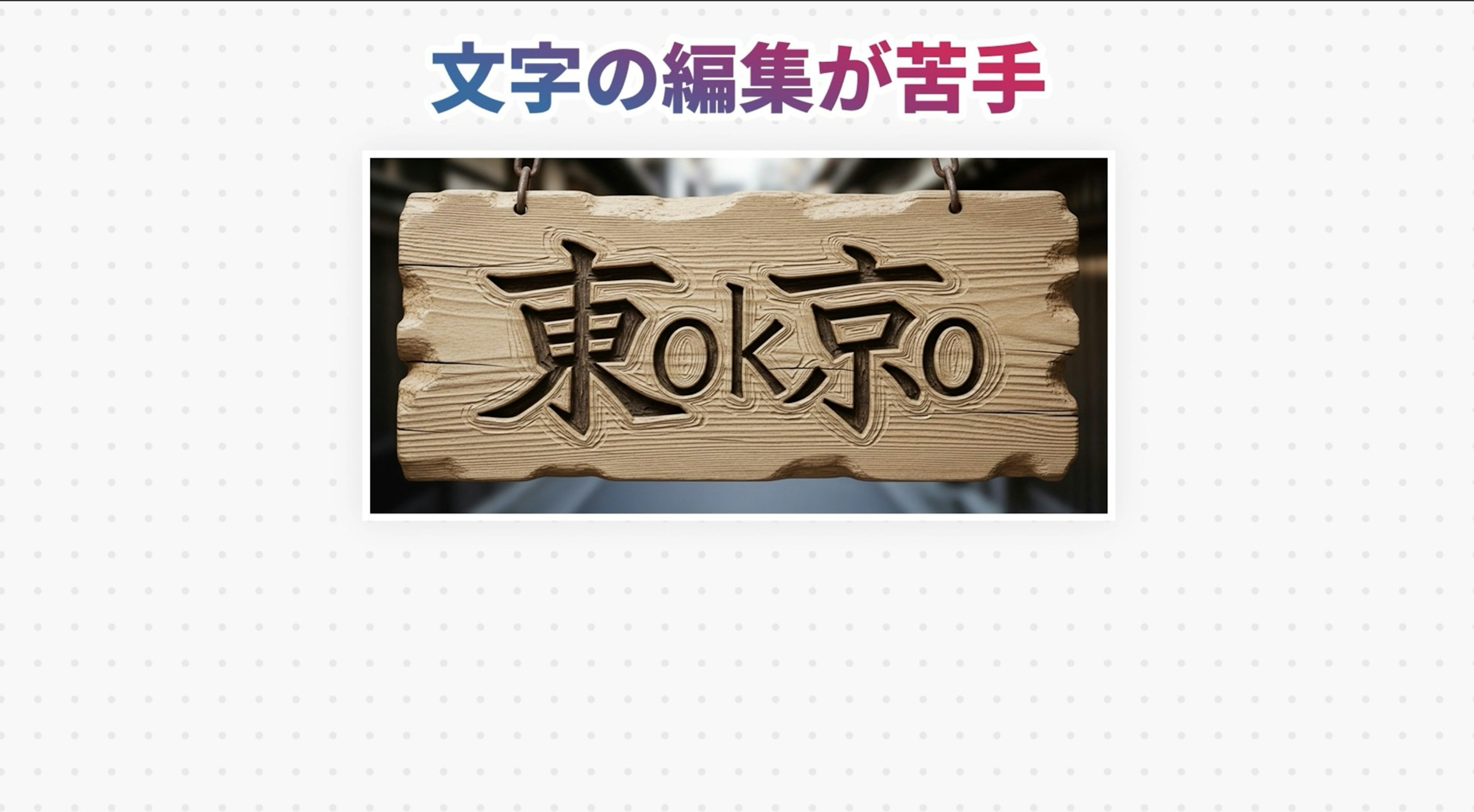 それは、日本語の文字、特に漢字の編集や生成がまだ少し苦手なことです。