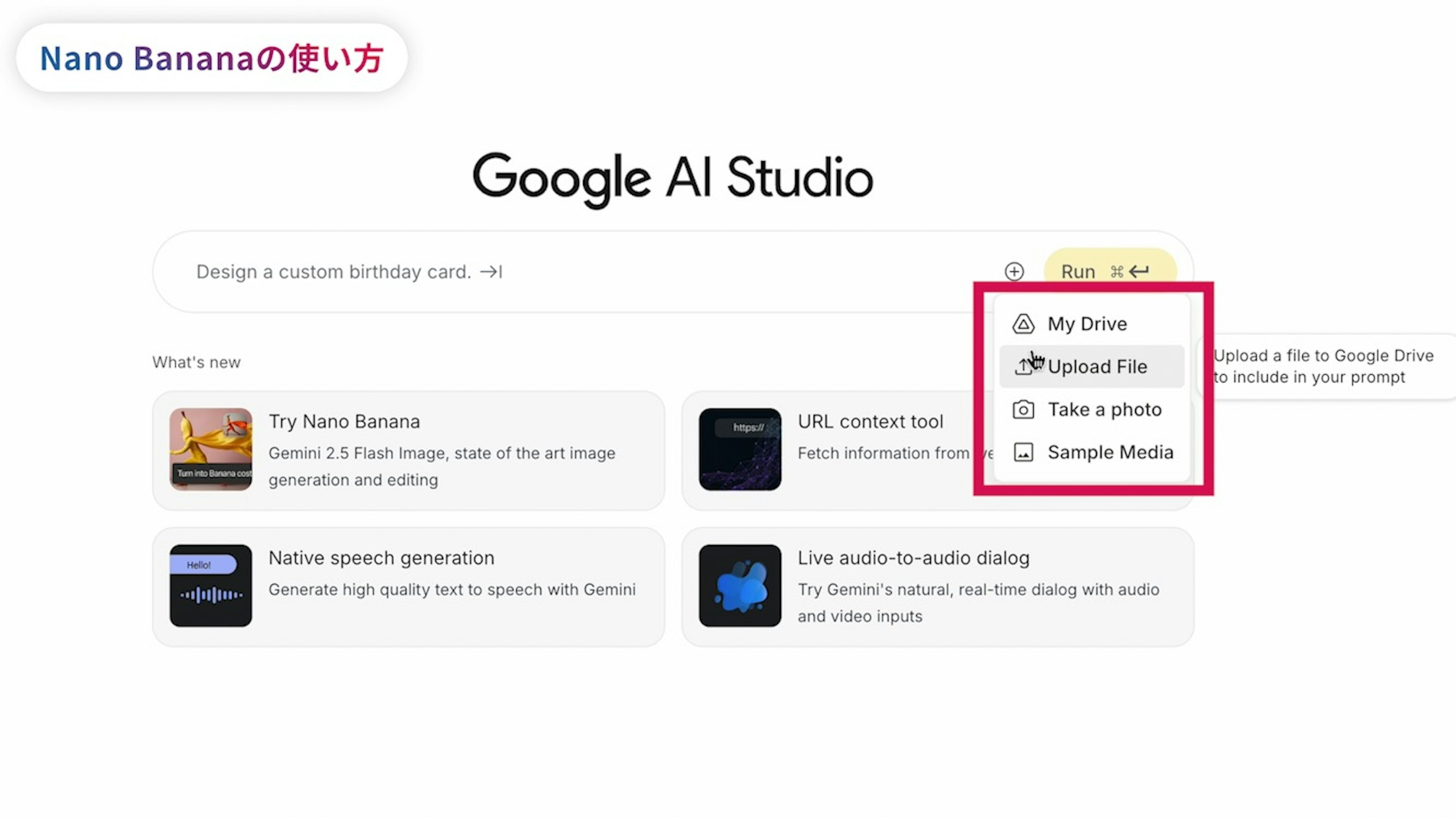 今回は、使うAIモデルを明確に選べる、Google AI Studioで編集してみましょう。