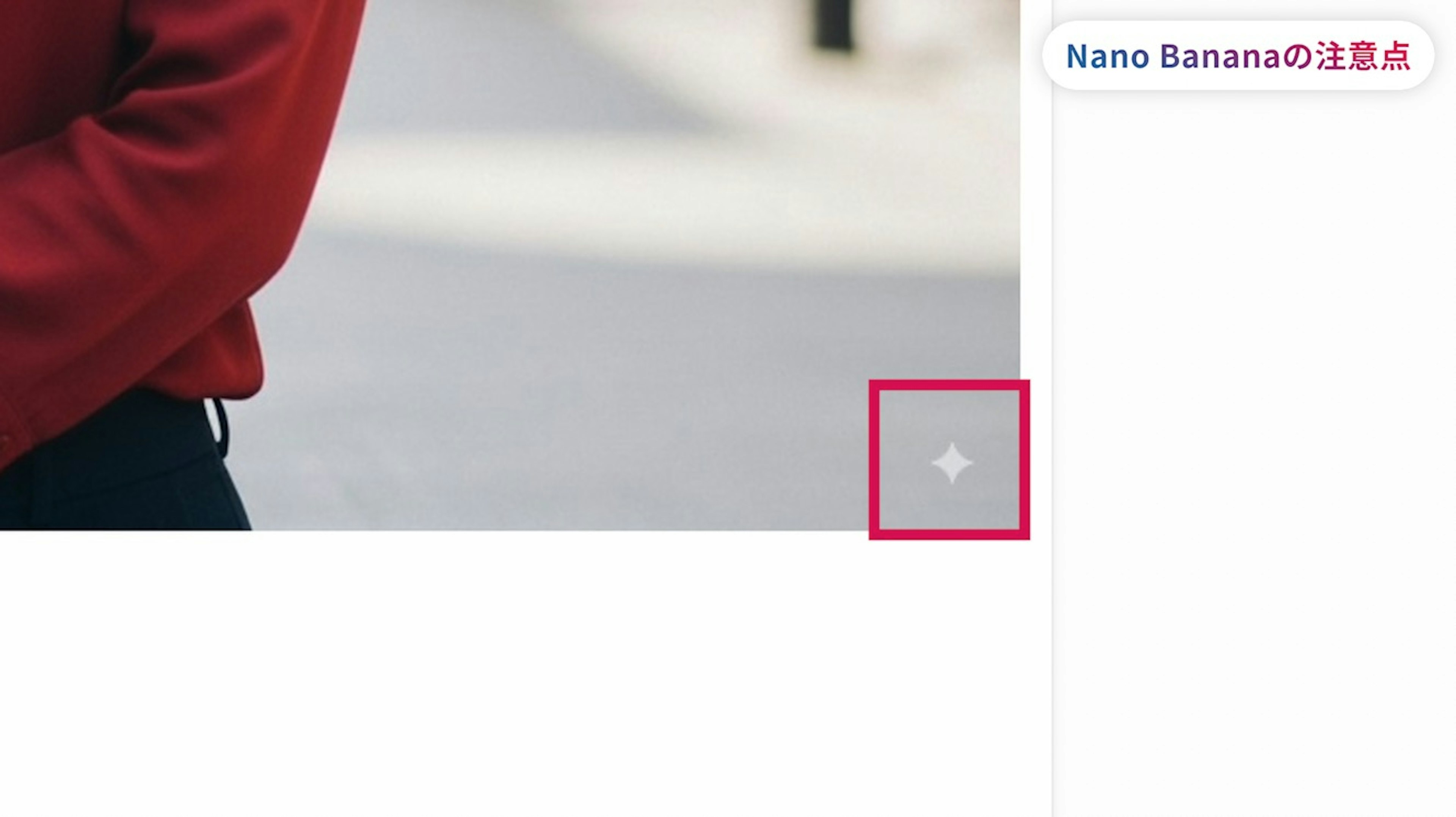 Nano Bananaで生成した画像には、『ウォーターマーク』と呼ばれるAIが作ったことを示す『透かし』が入ります。