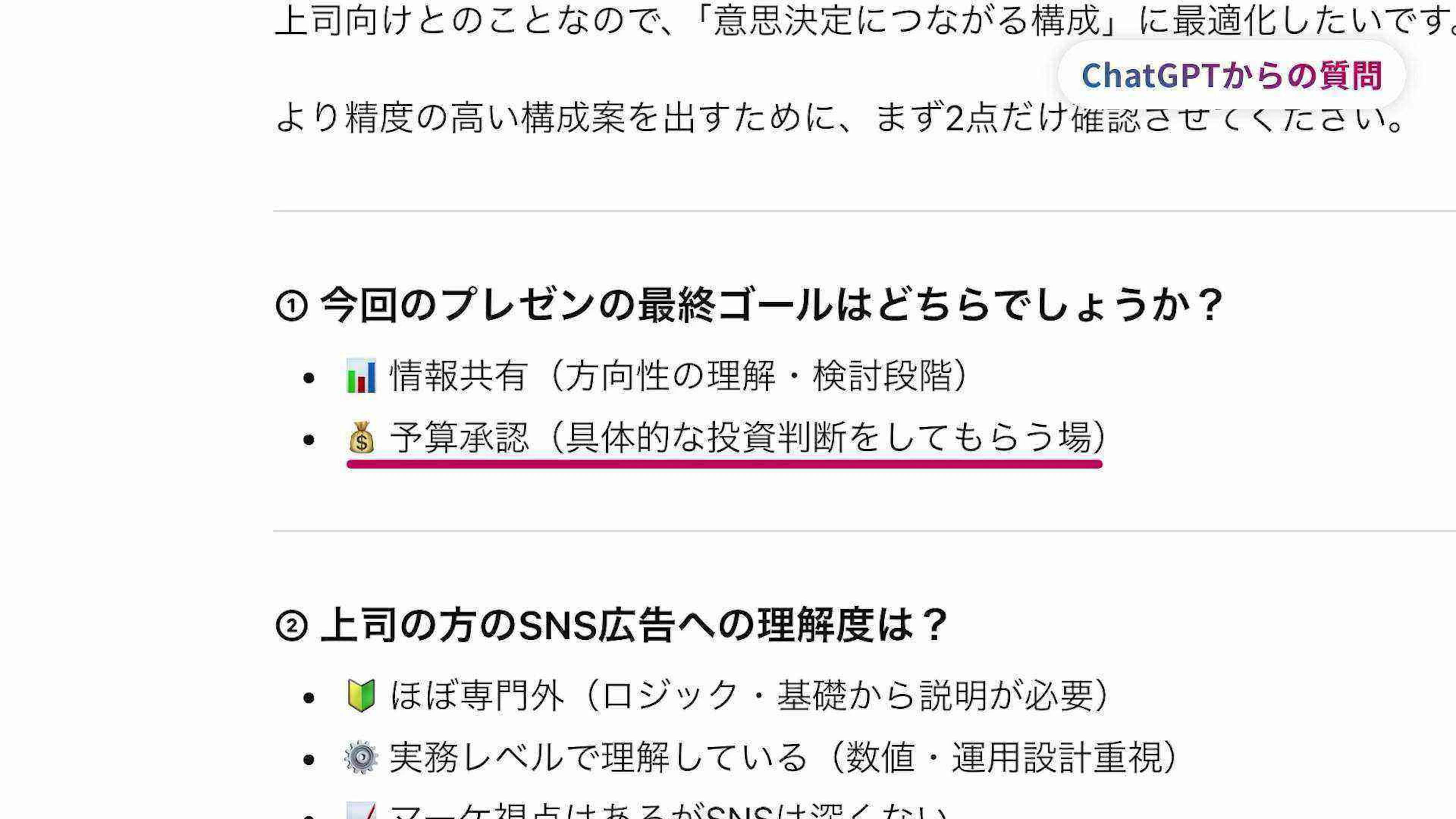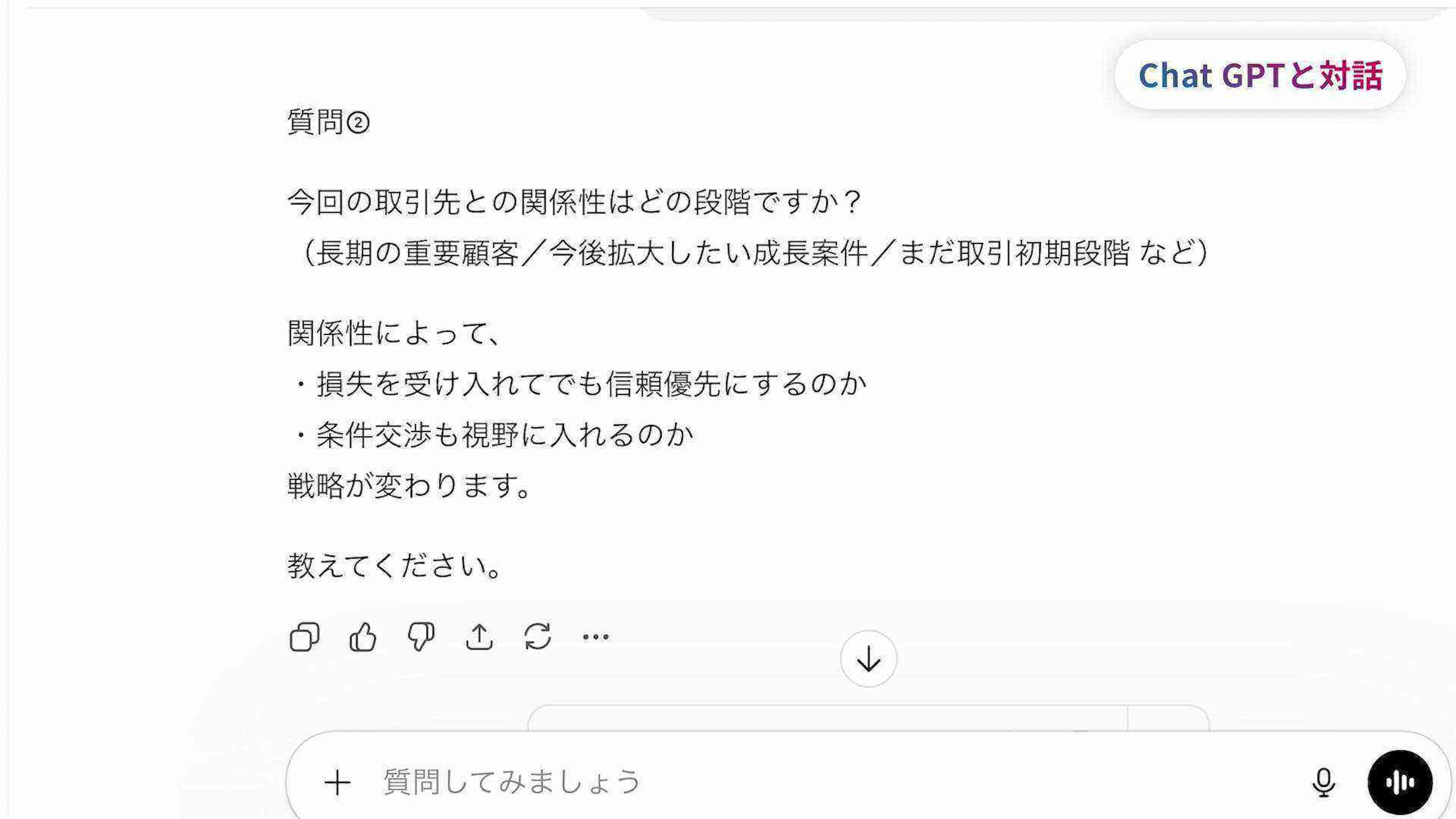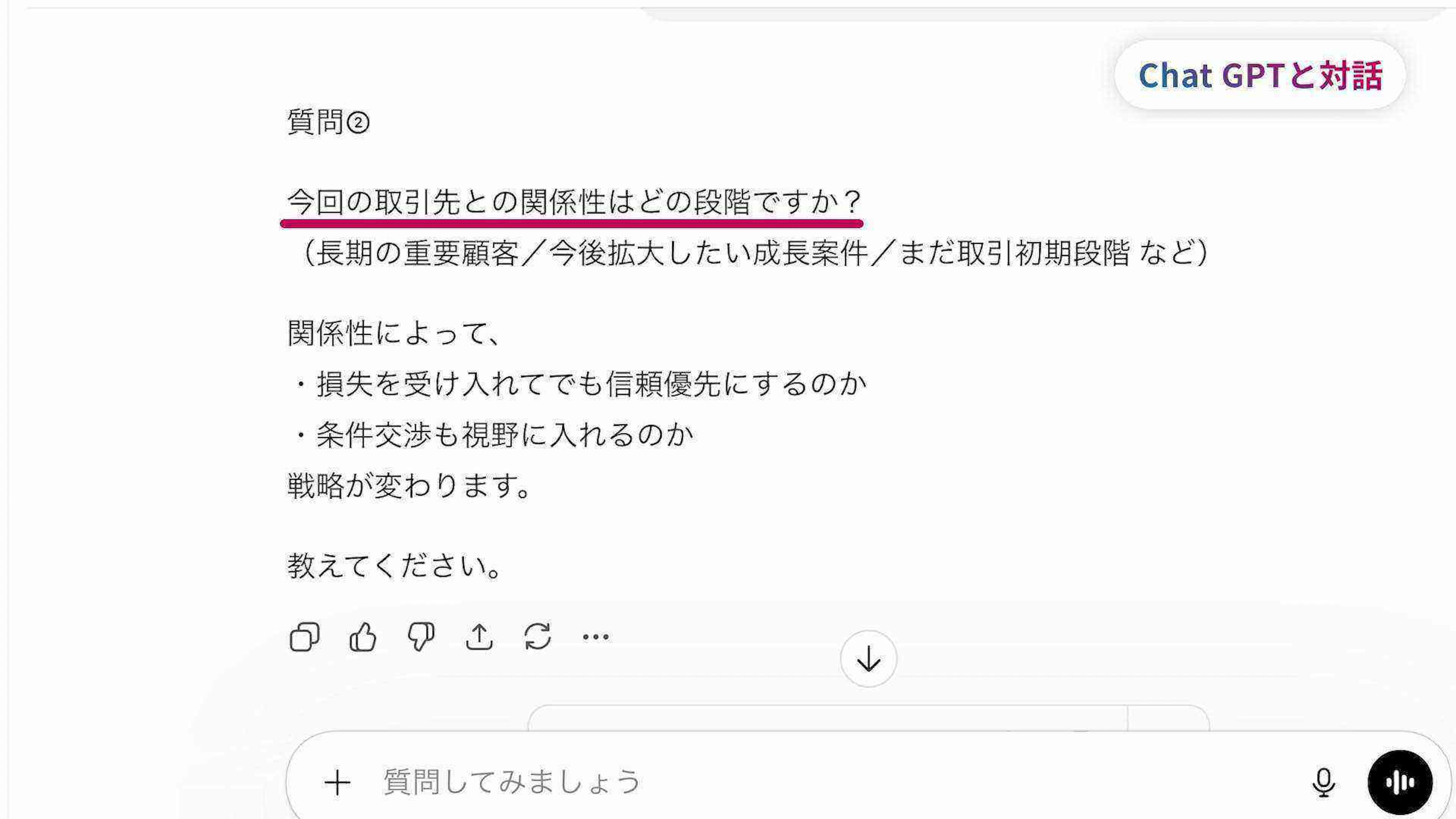 AIに質問させることで、重要な情報をAIに伝え漏れずに済みます。