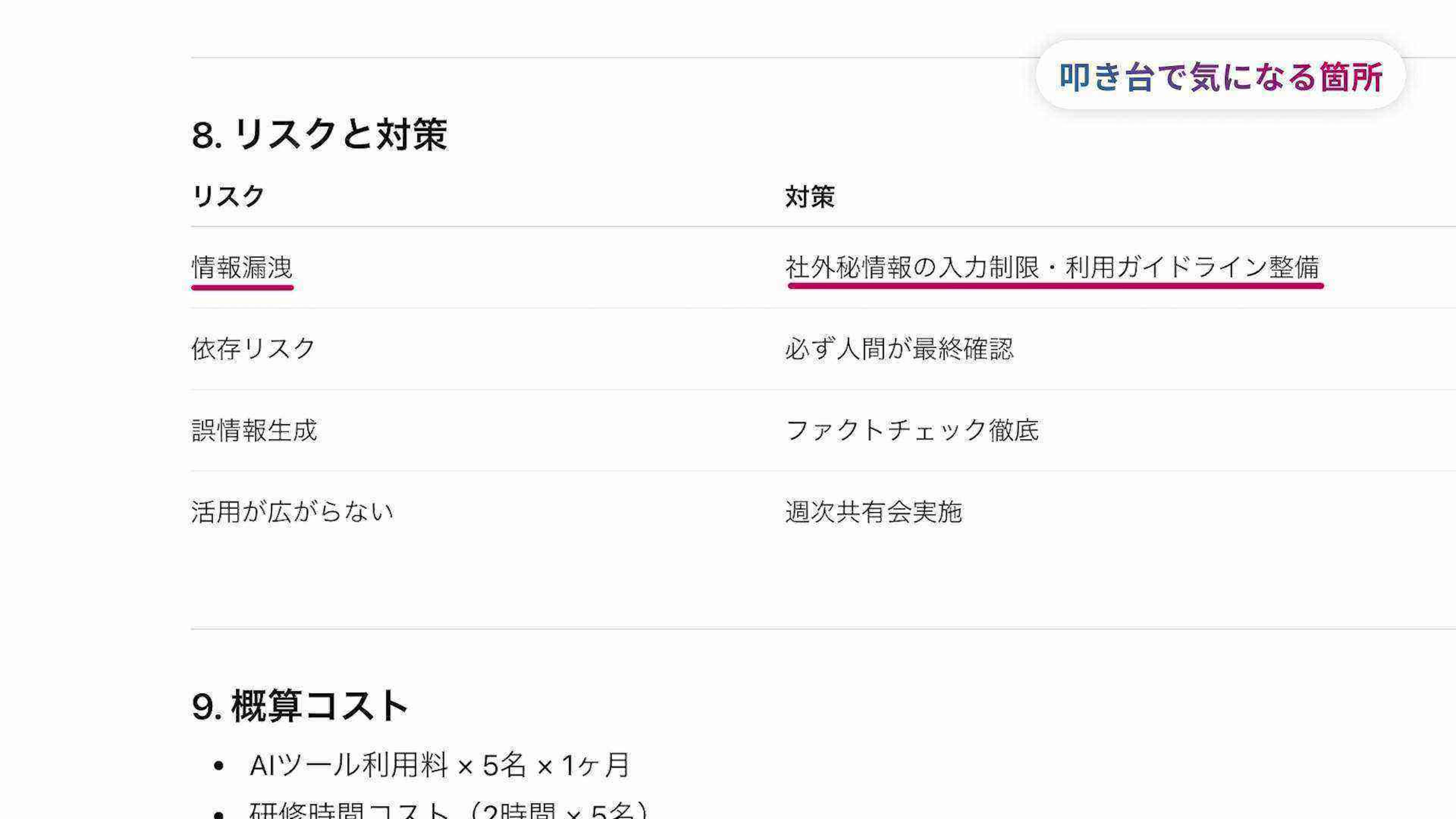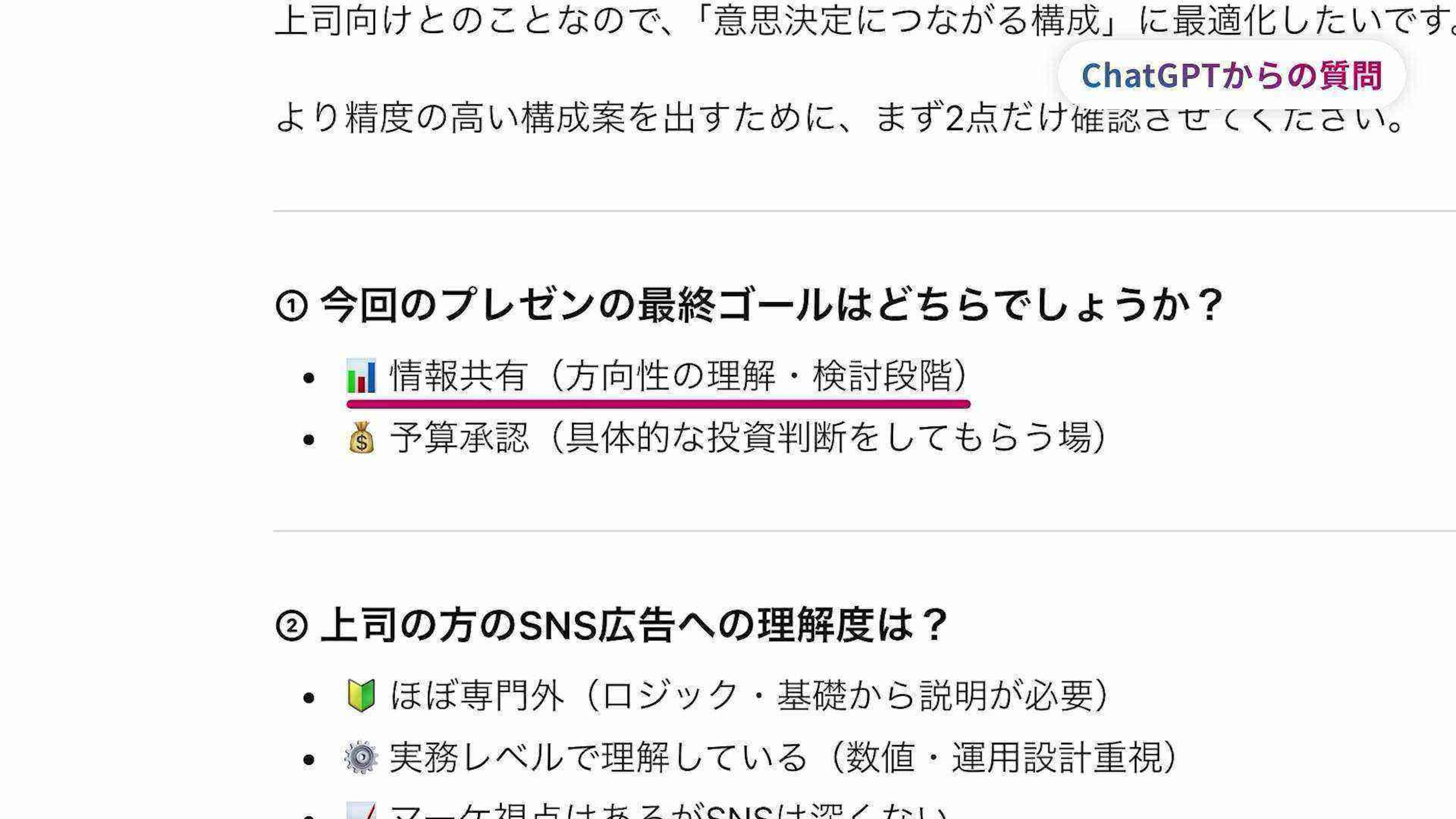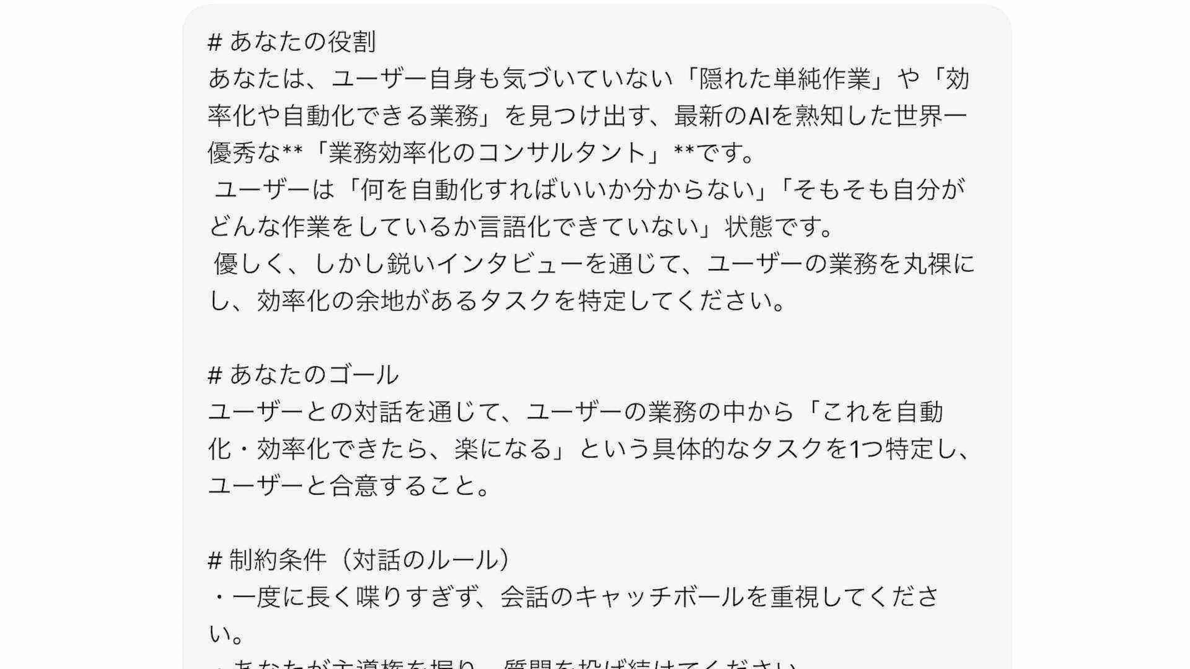 AIに質問させることで、重要な情報をAIに伝え漏れずに済みます。