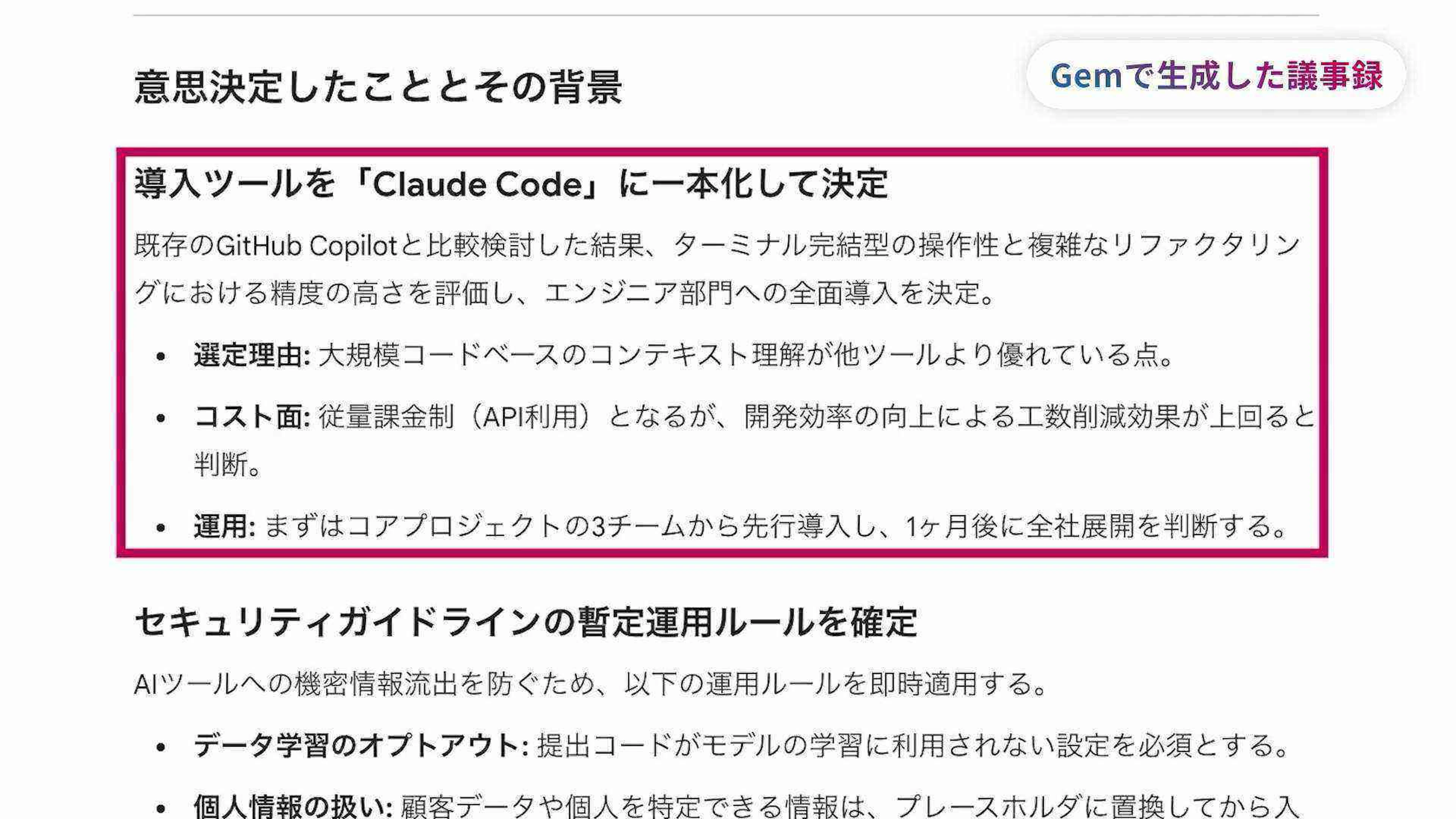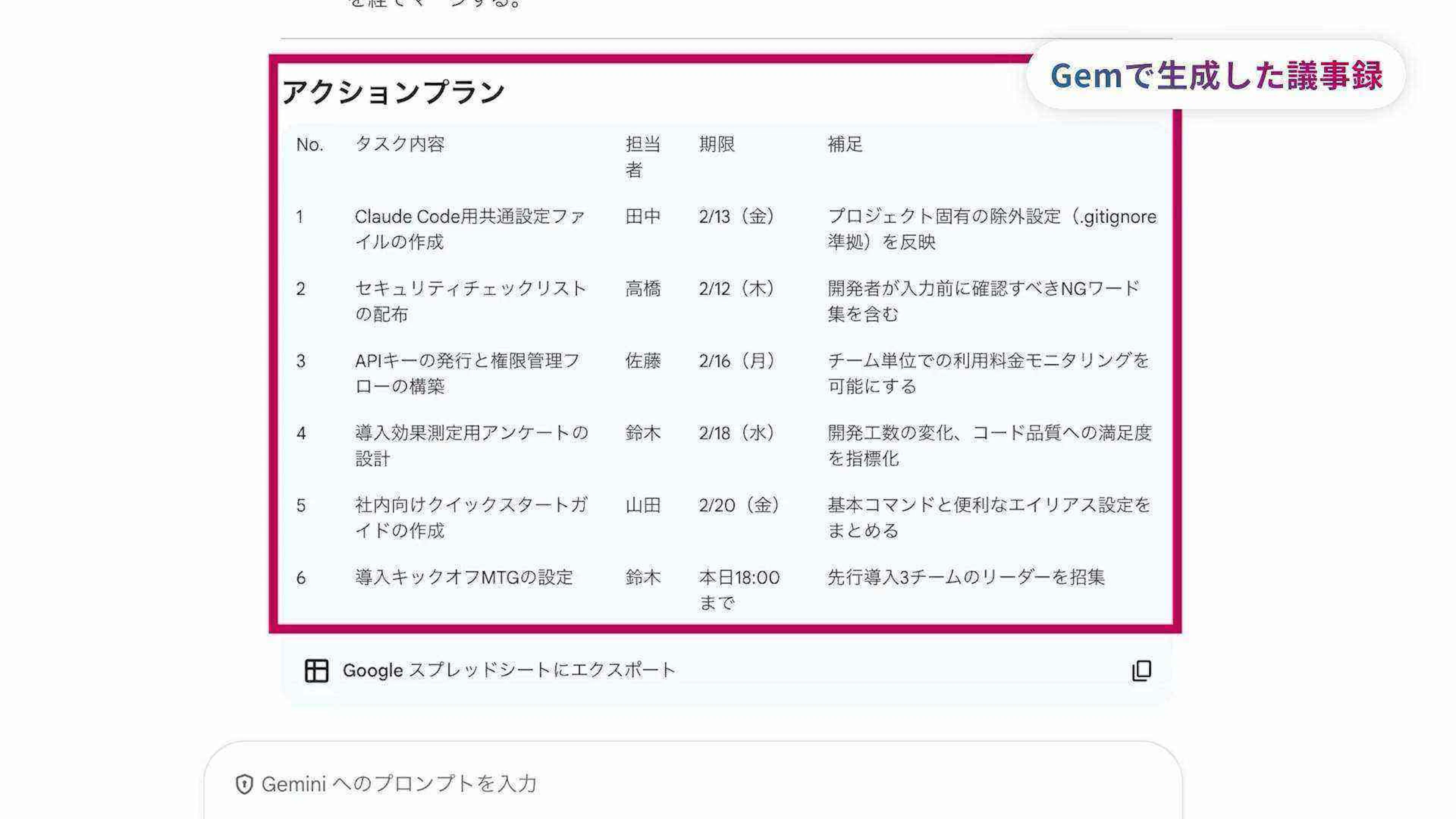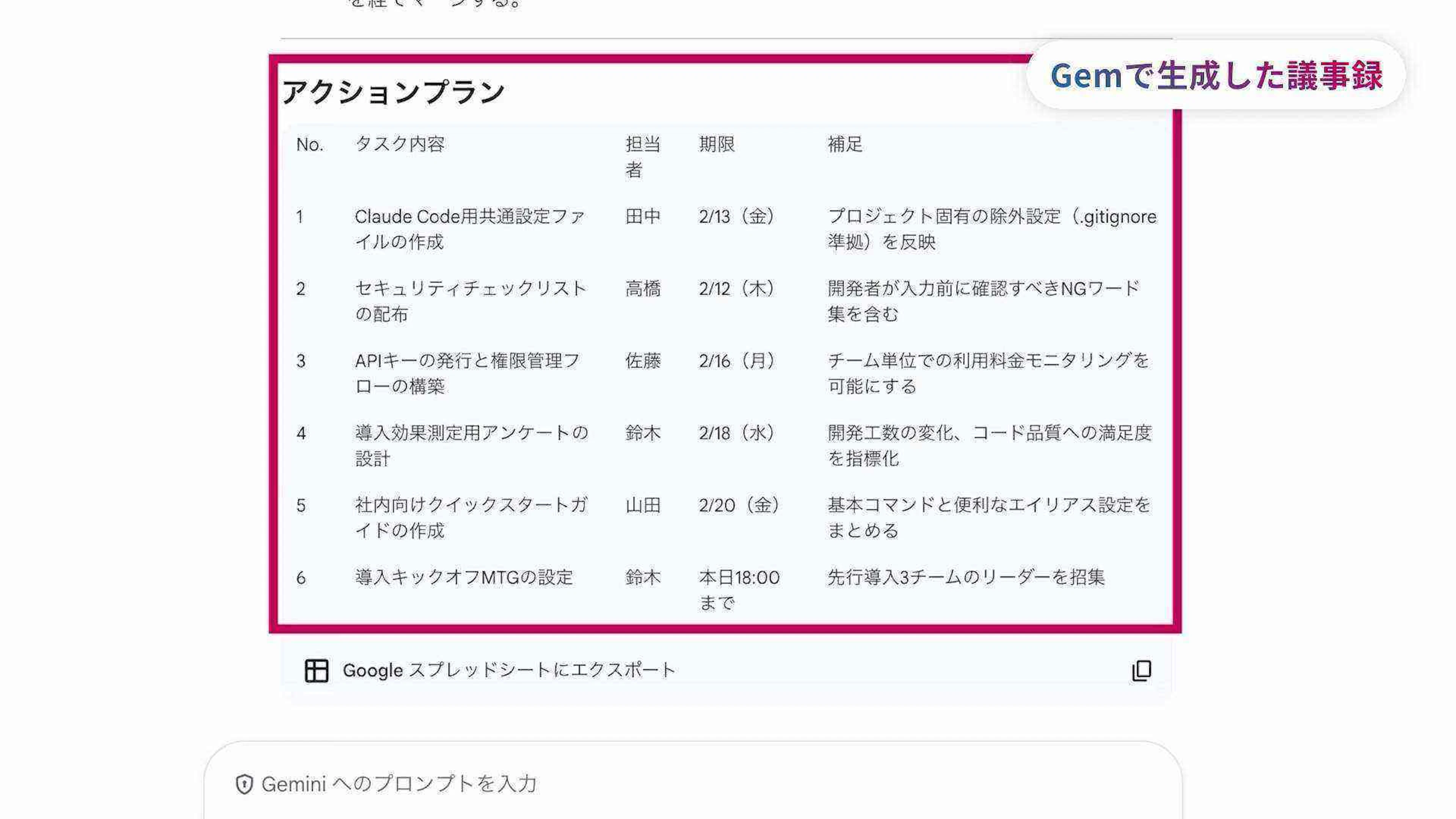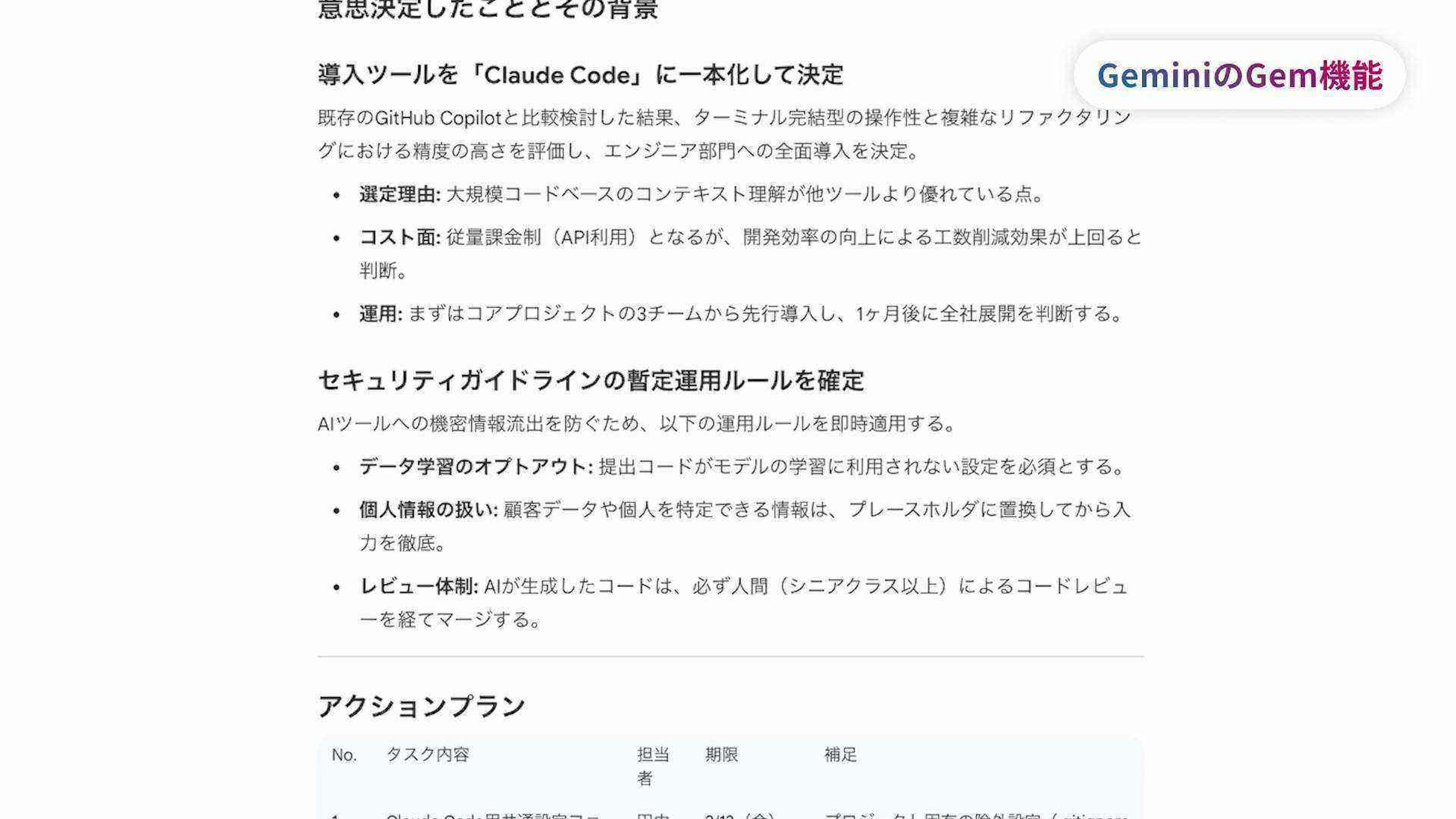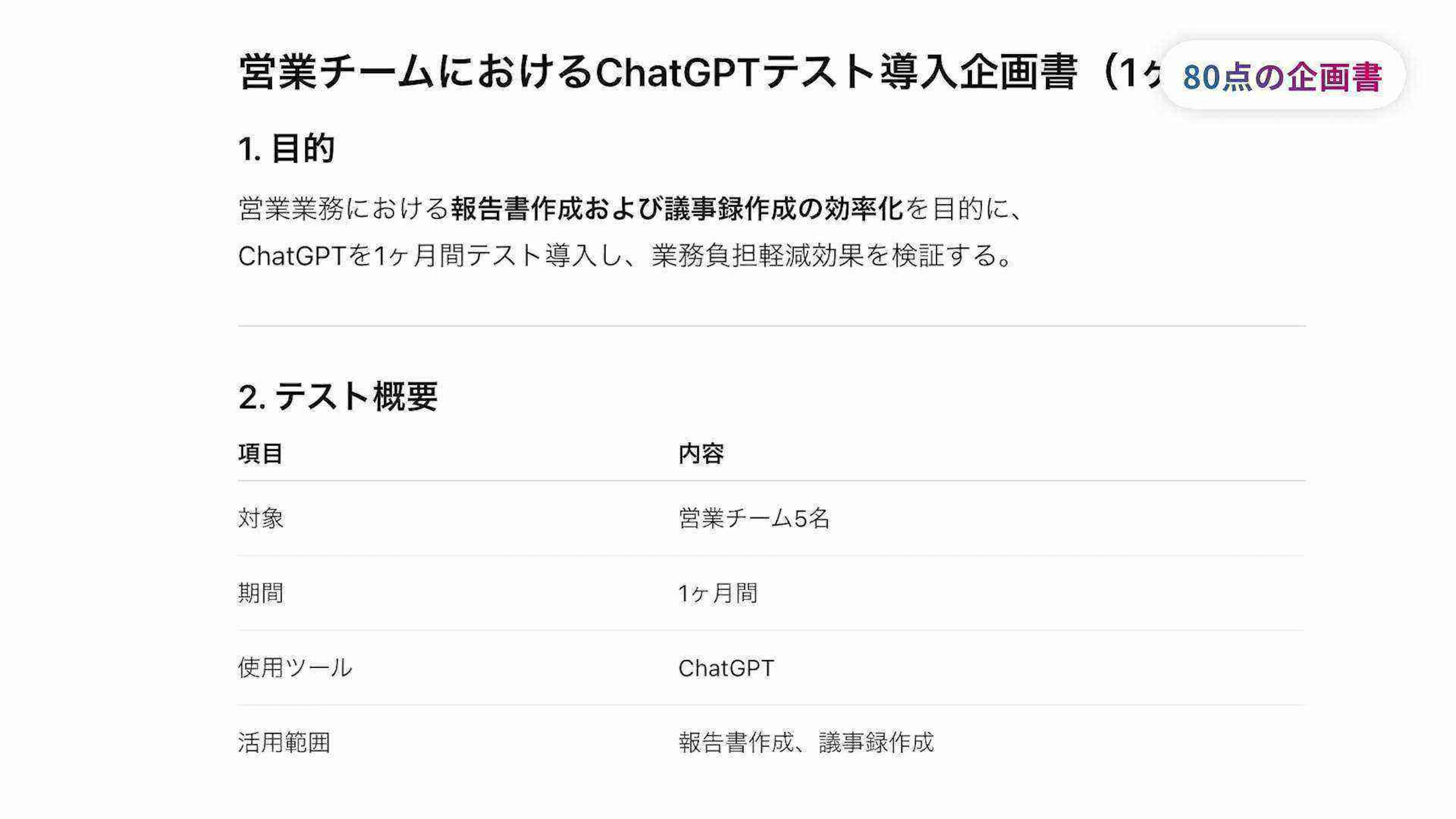 他にも社内イベントの運営を任されたとき、自分で段取りを考える前に、まず仕事の進め方からAIに提案させれば、自分では思いつかなかった進め方が出てくることもあるでしょう。