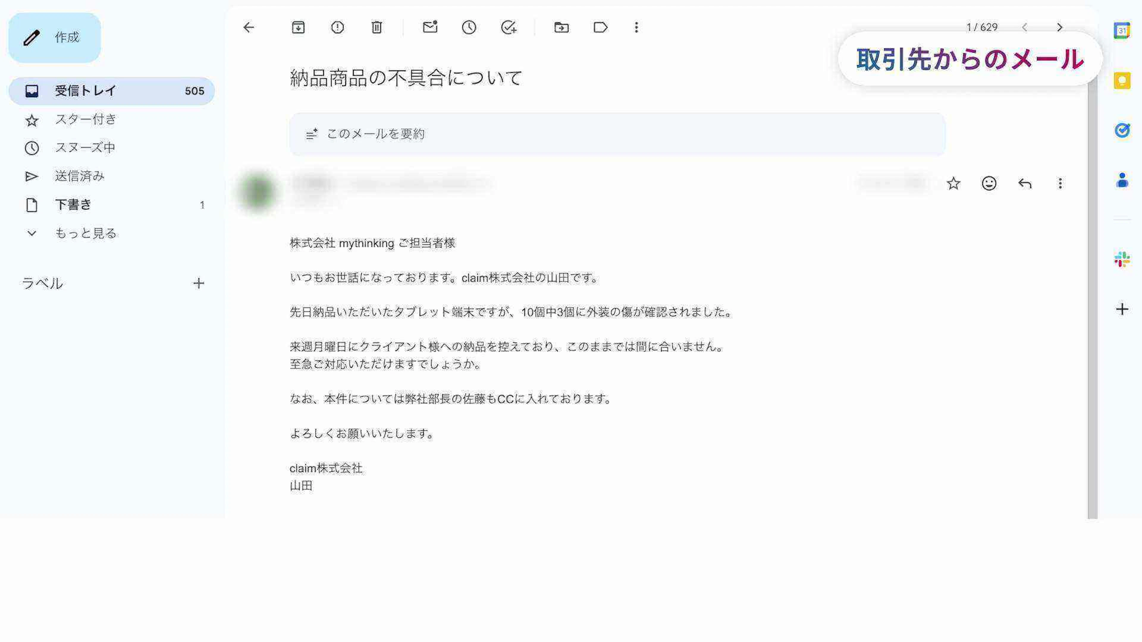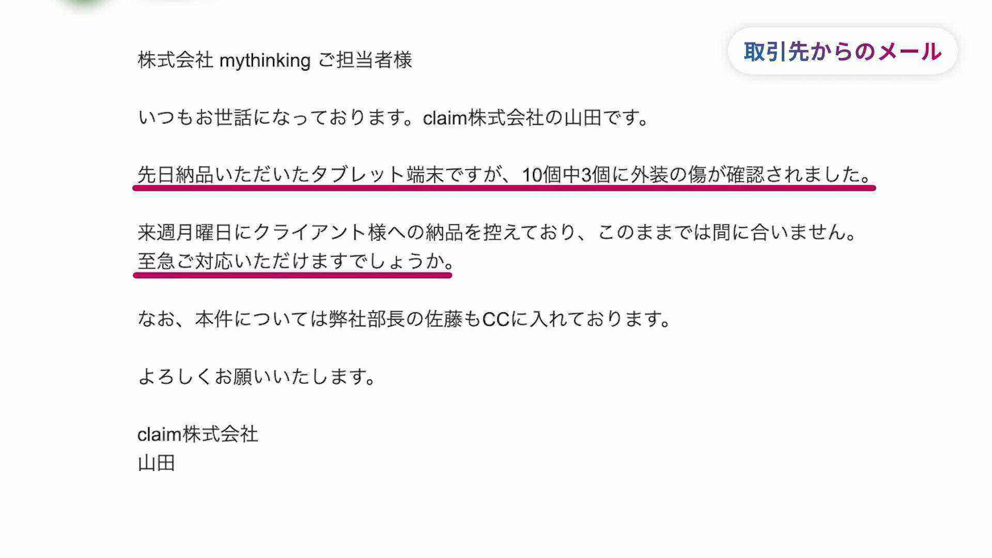 なになに?「納品した商品の不具合で10個中3個に傷」...?