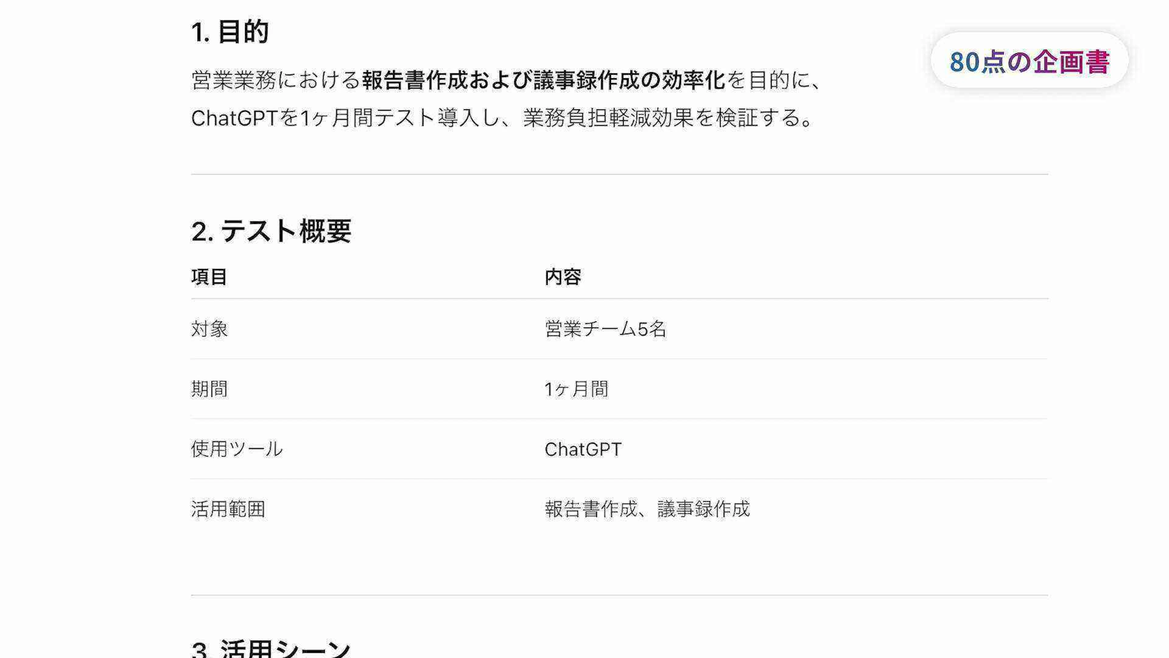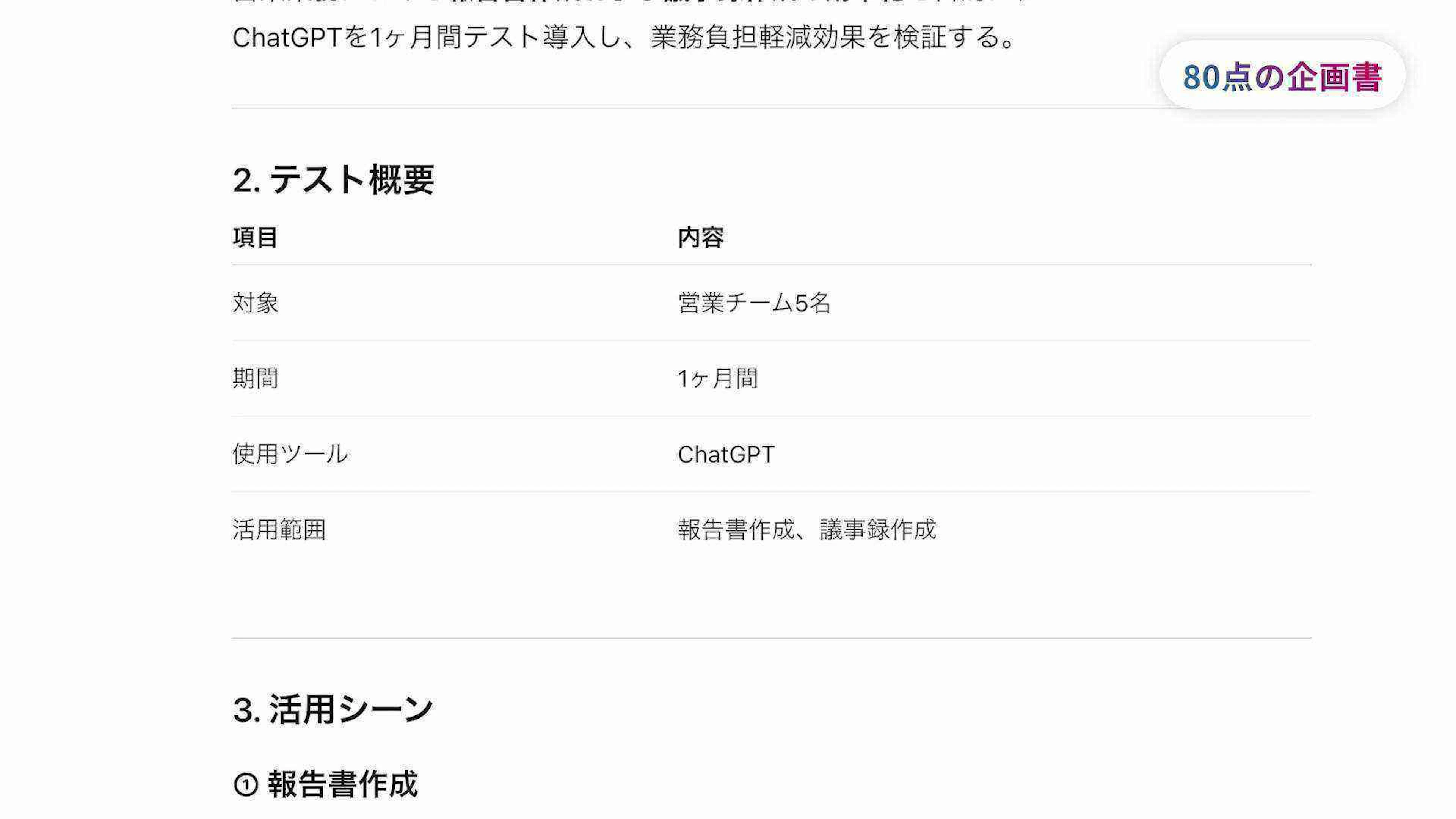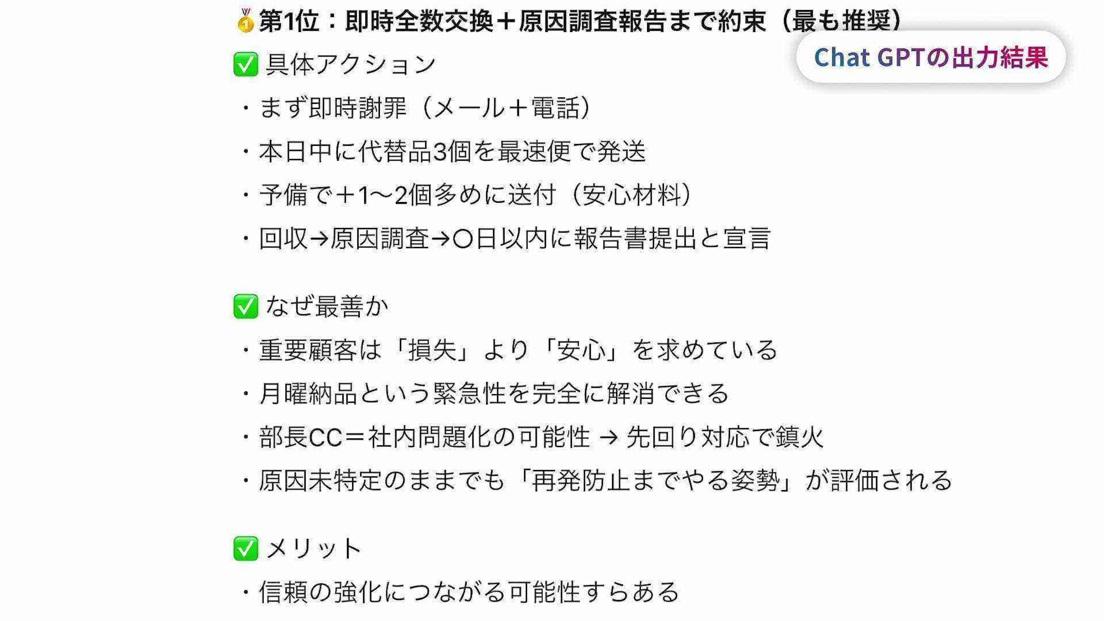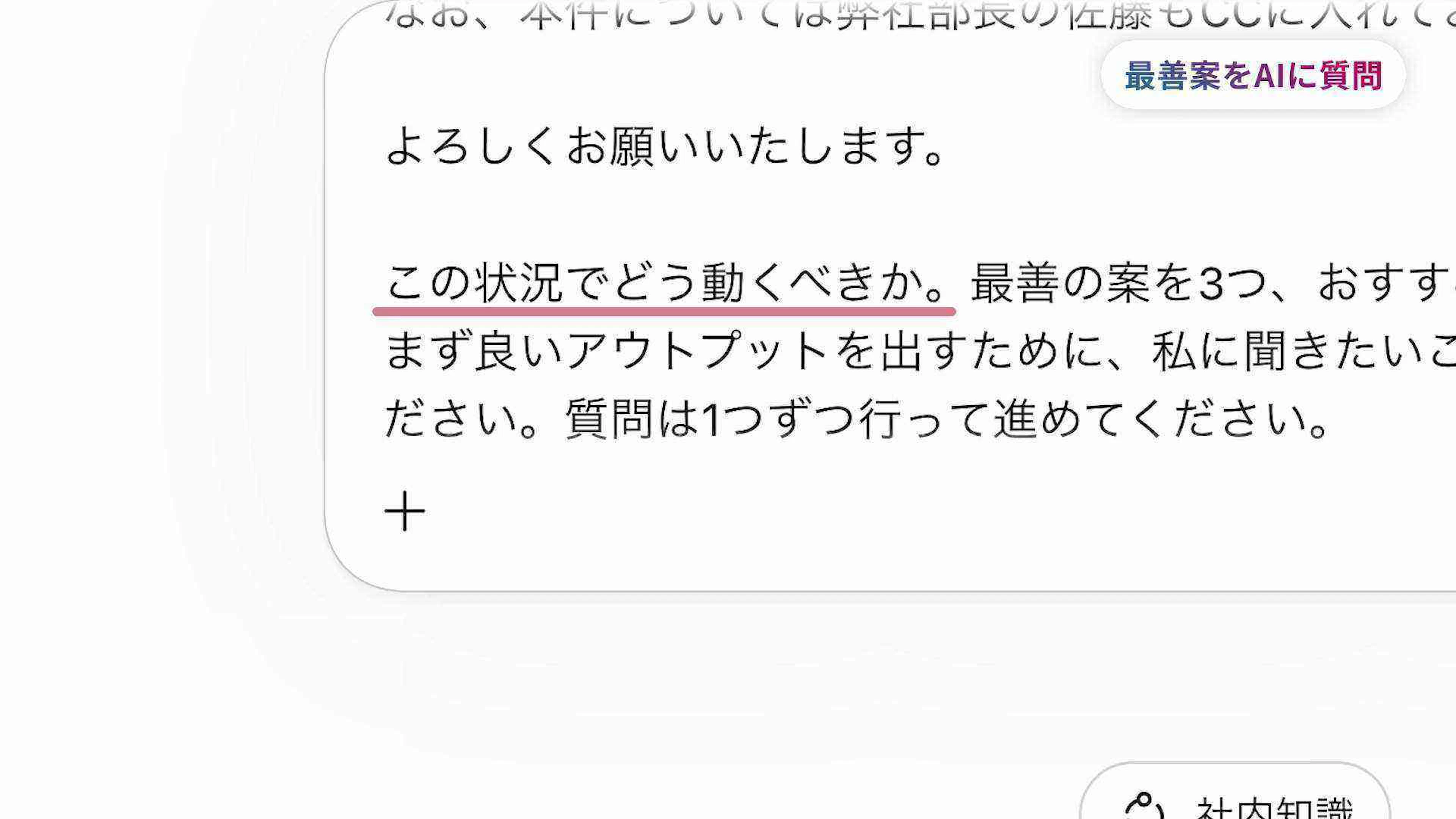 「最善の案を3つ、おすすめ順に理由付きで提案して」は「ていあん」で。