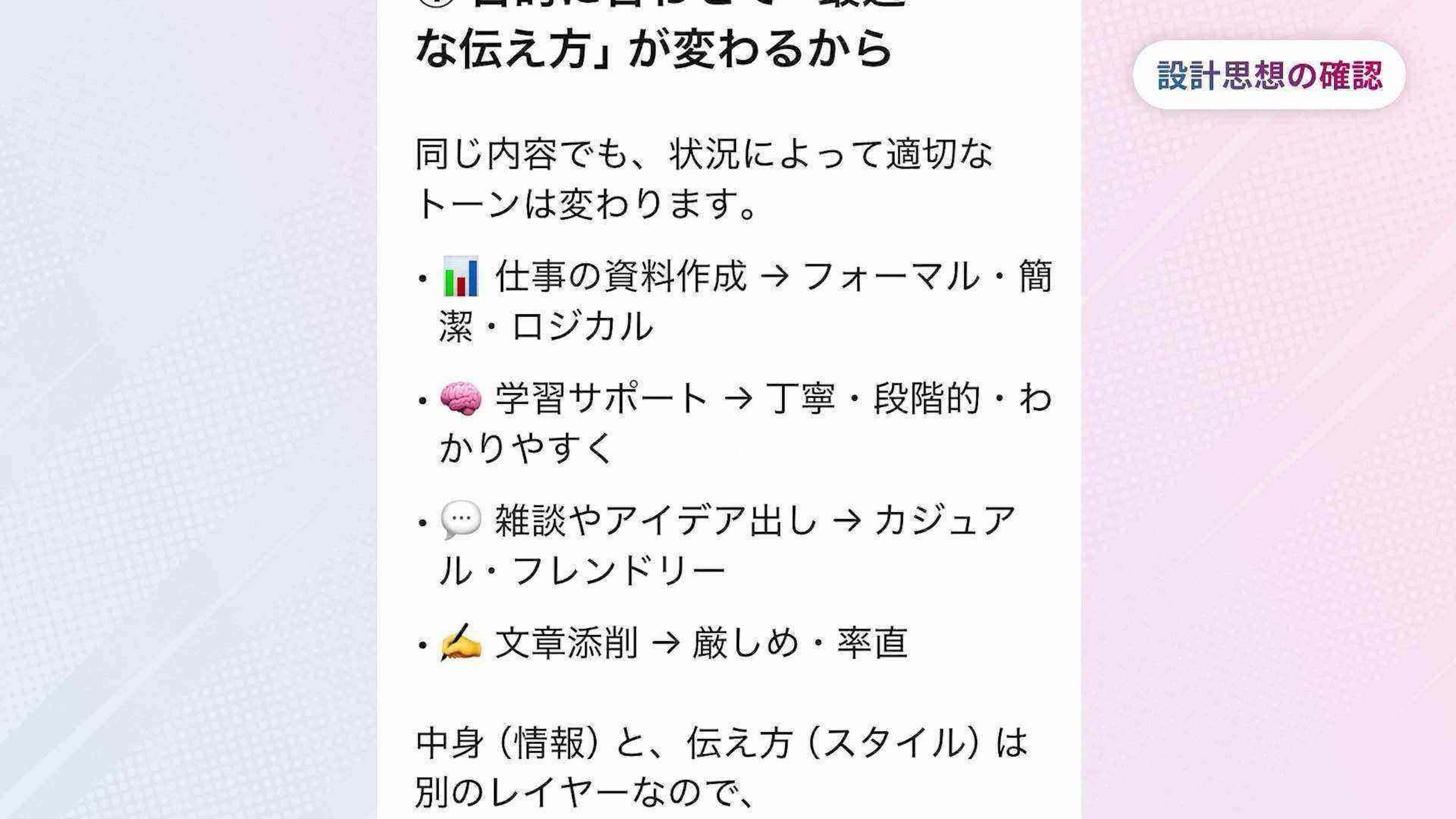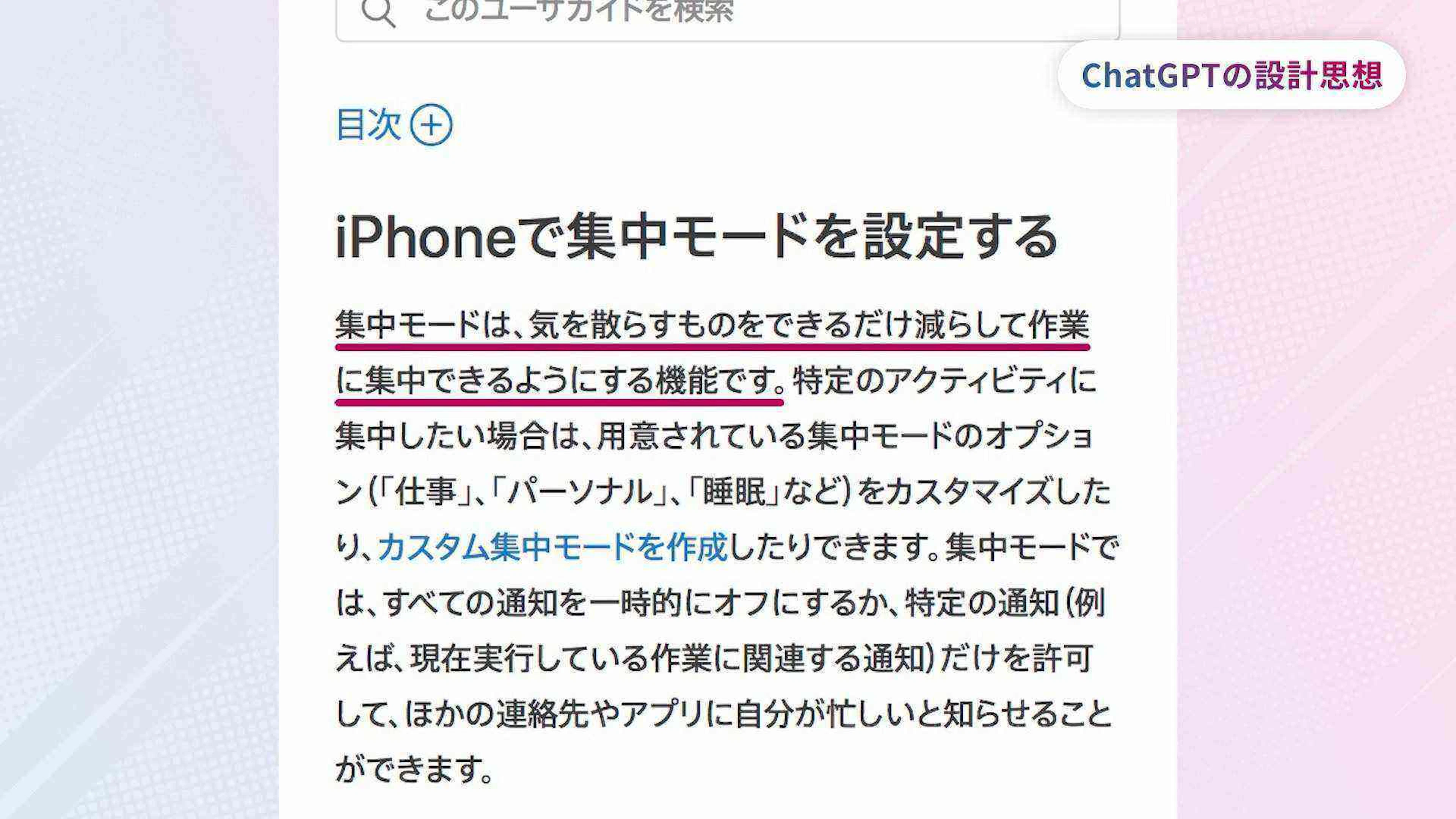 iPhoneの集中モード機能にAppleの設計思想があったように、なぜChatGPTにこの設定があるのか、AIに聞いてみてください。