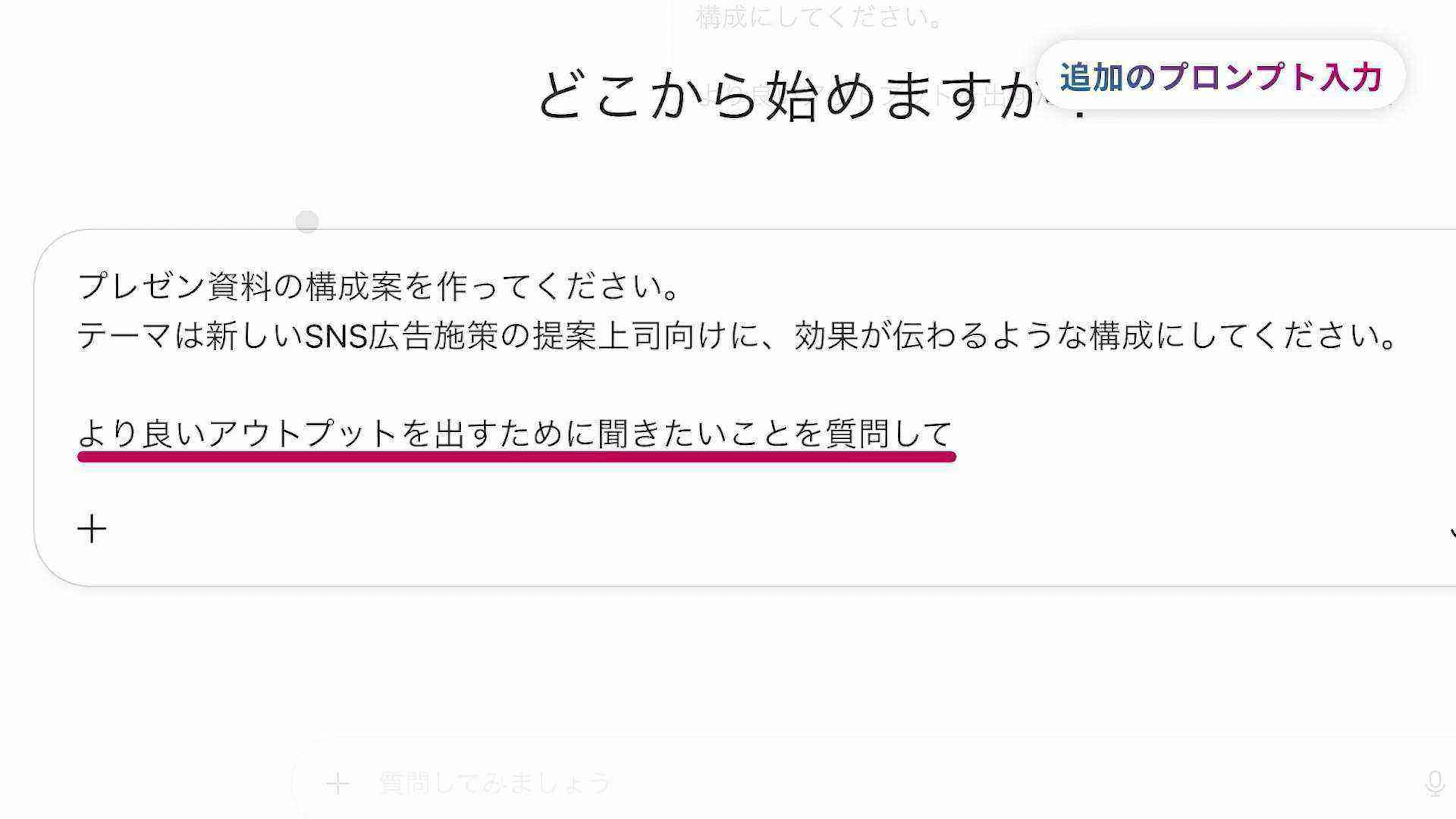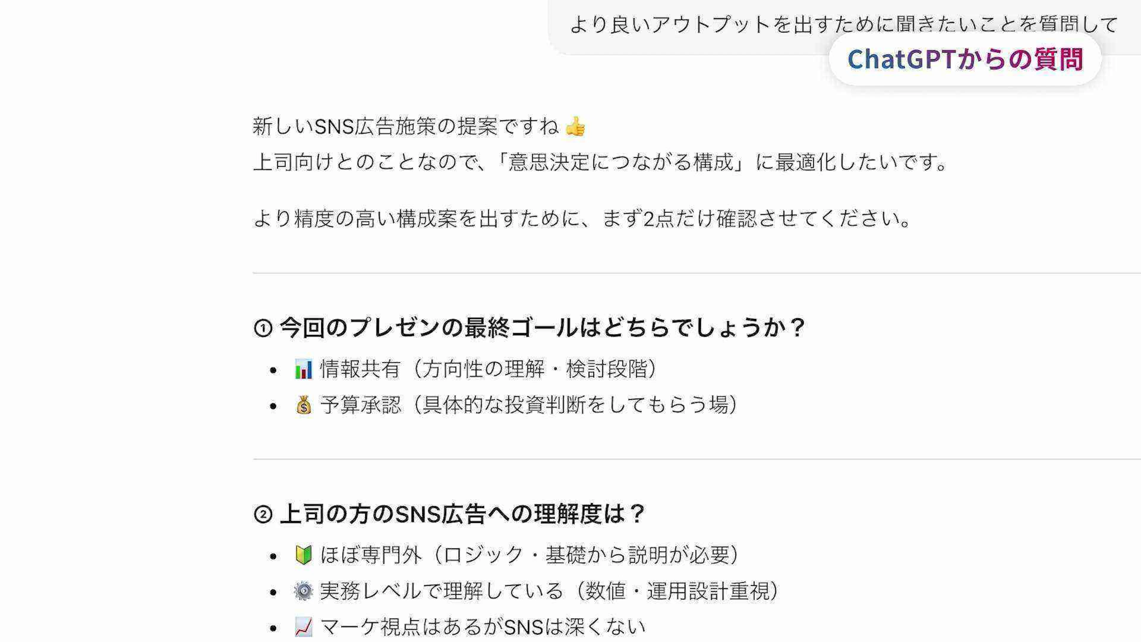 へえ、提案させるだけじゃなくてAIに質問もさせるんですね。