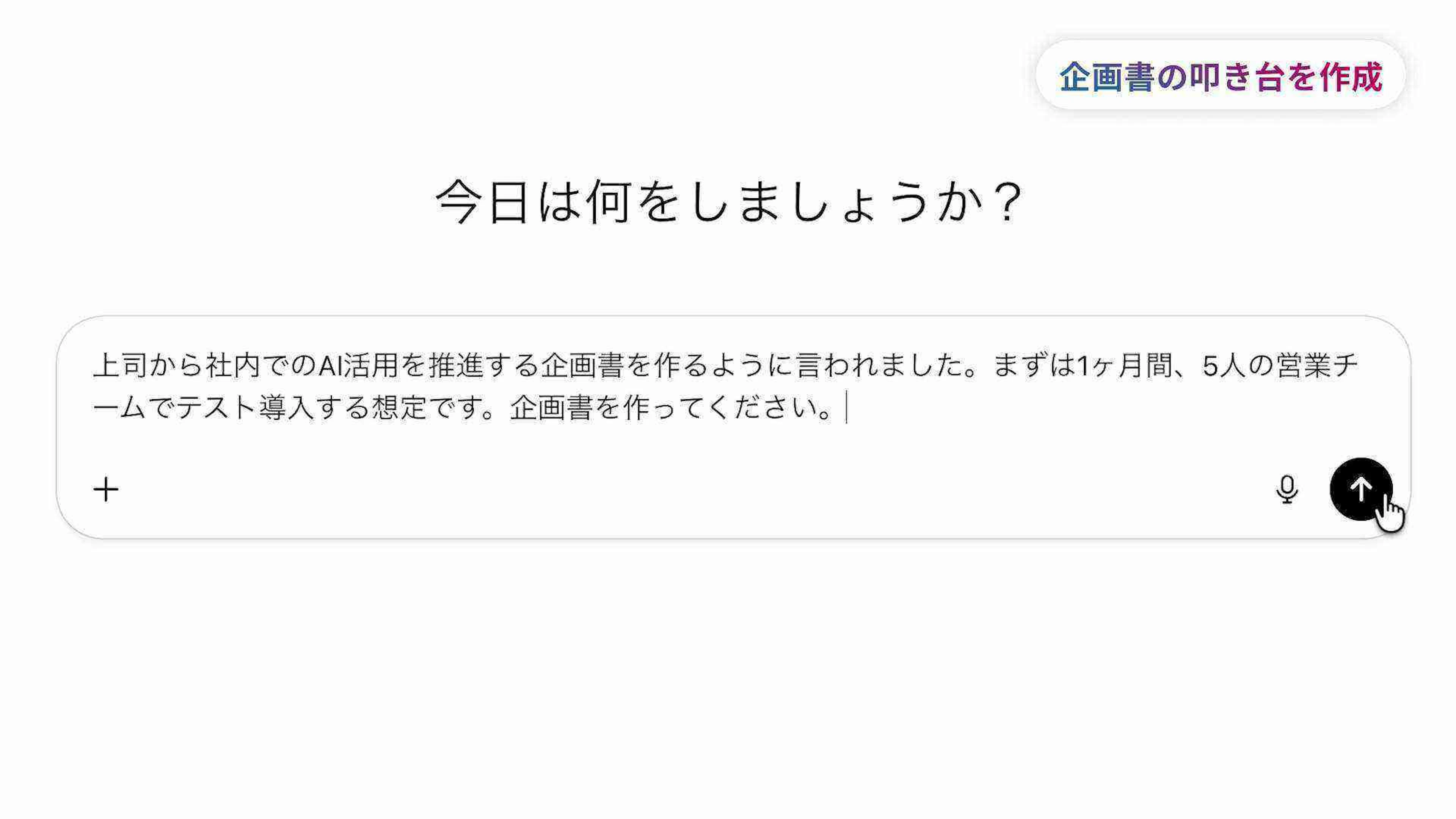 これを使ってAIに「どう動くべきか」の案を出してもらいます。