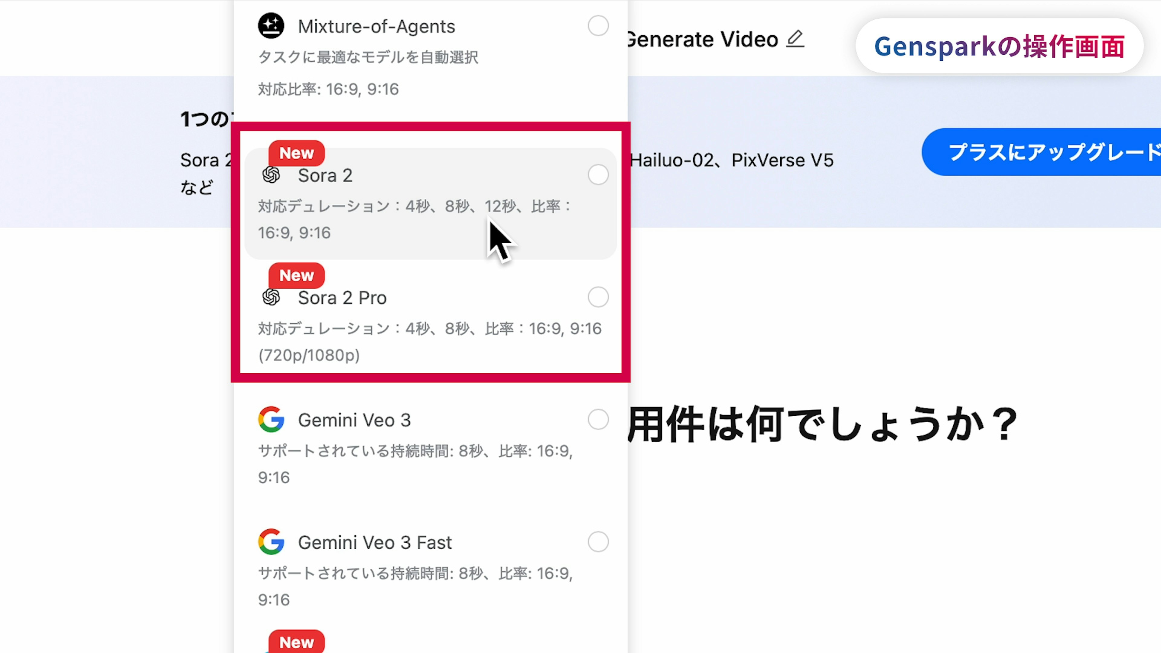 GensparkはChatGPTやClaude、Geminiなど様々なモデルやツールをはじめ、Sora2も利用することができるプラットフォームです。