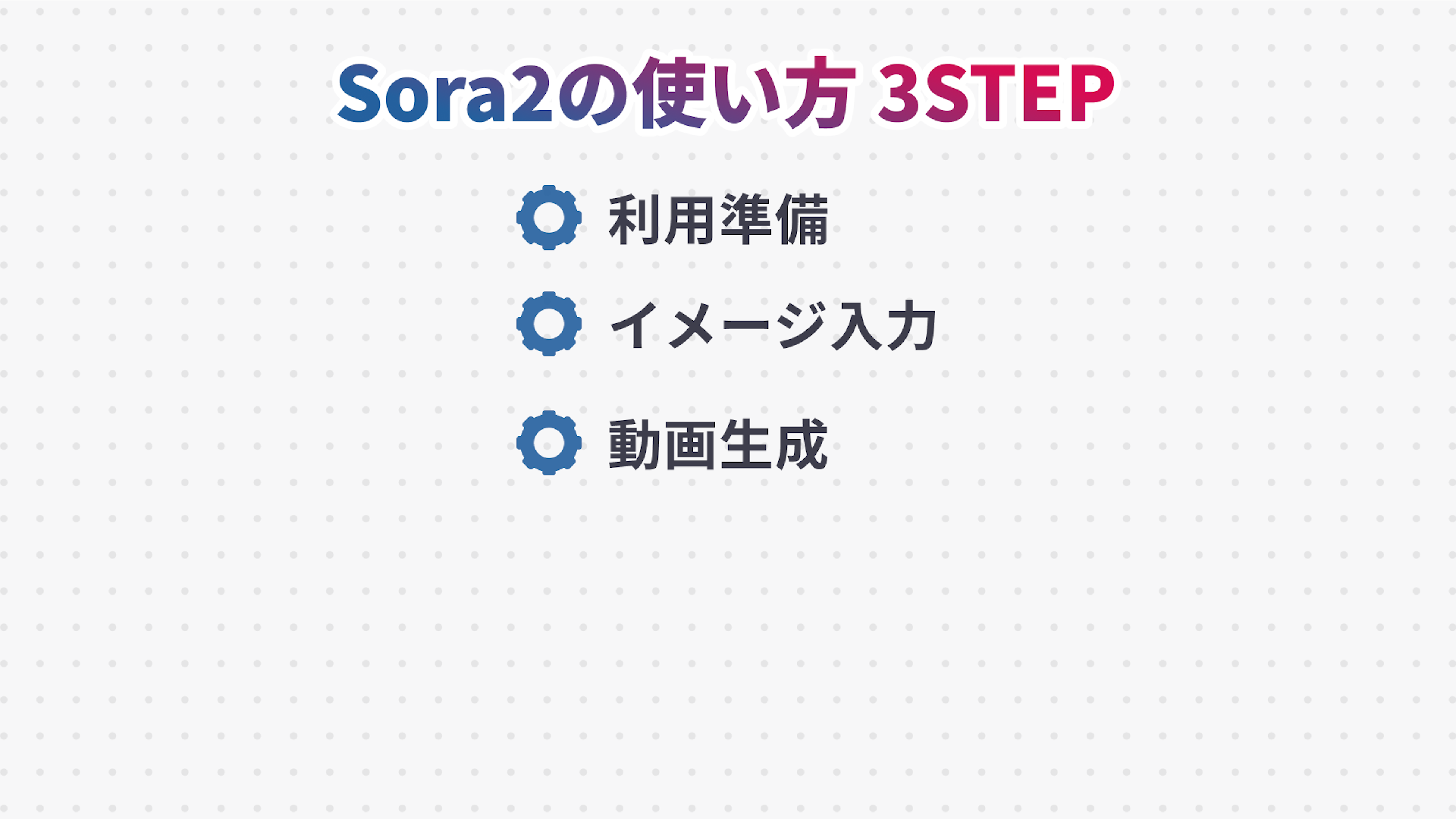 ステップ1、Sora2の利用準備、ステップ2、動画のイメージを入力、ステップ3、動画の生成です。
