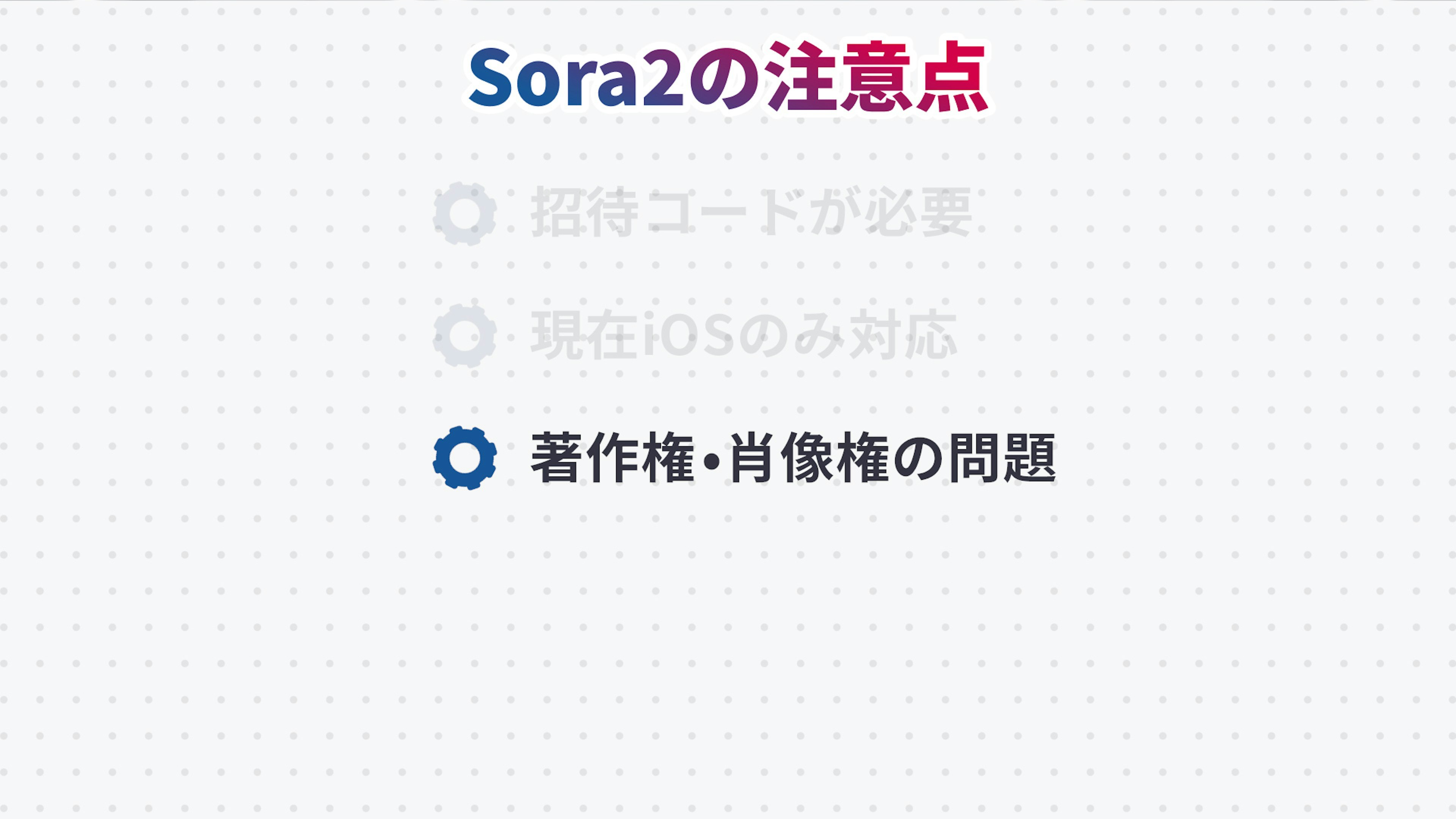 さて、ここまでSora2の素晴らしい機能を見てきましたが、実際に使い始める前に知っておくべき重要な注意点が3つあります。