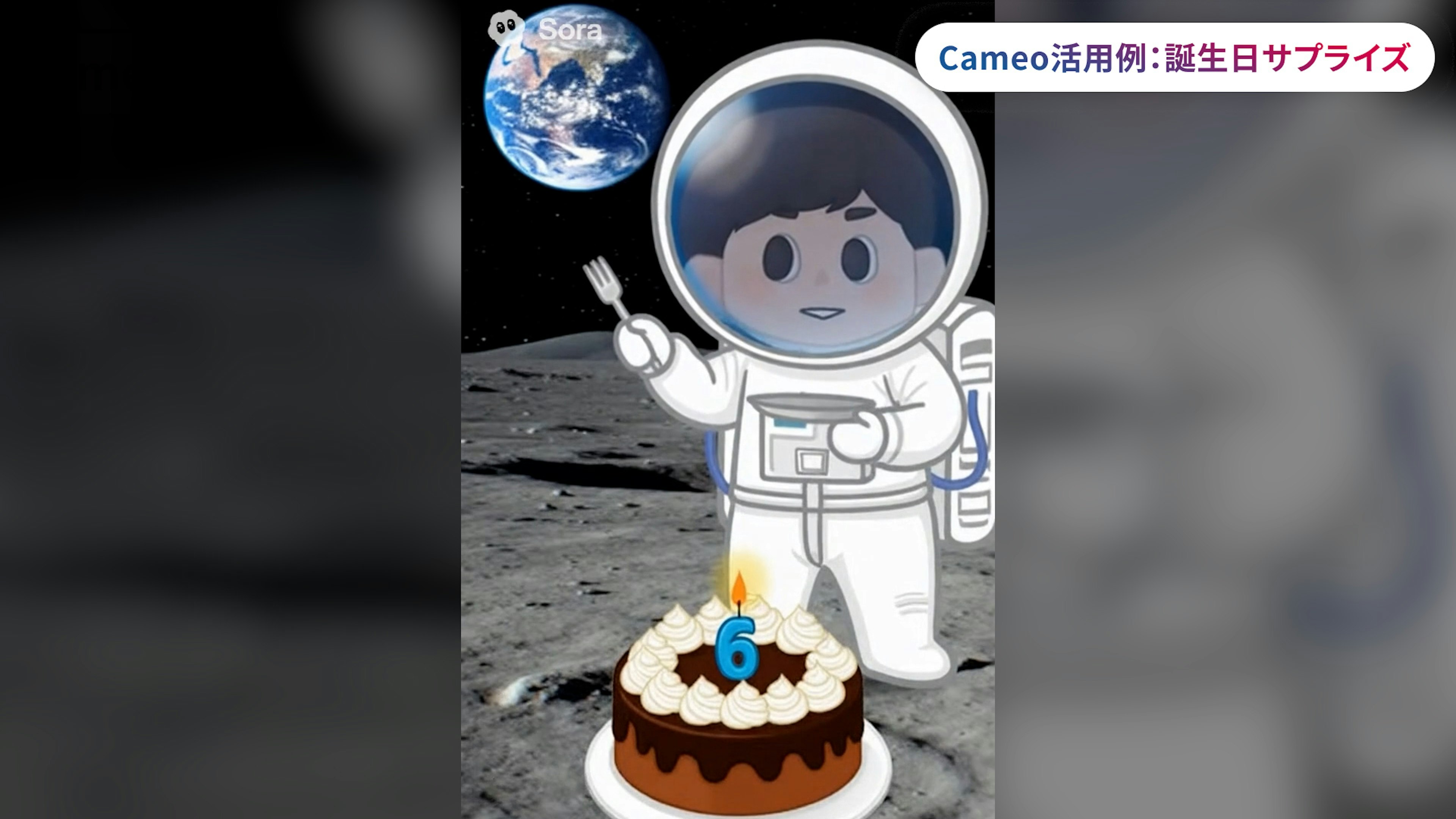 「(友人の名前)が宇宙飛行士になって、月面でバースデーケーキを食べる」といったプロンプトで作った動画を送れば、唯一無二のプレゼントになりますよ。